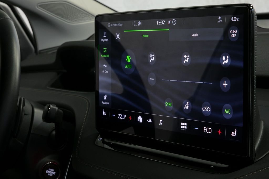 | Vnitřní výbava a komfort | Bezklíčkové ovládání, El. sklopná zrcátka, Vyhřívaná zrcátka, Klimatizace třízónová, Multifunkční volant, Nezávislé topení, El. přední okna, Vnitřní teploměr, Vyhřívaný volant, Deaktivace airbagu spolujezdce, Senzor tlaku v pneumatikách, Senzor opotřebení brzd. destiček, Senzor stěračů |