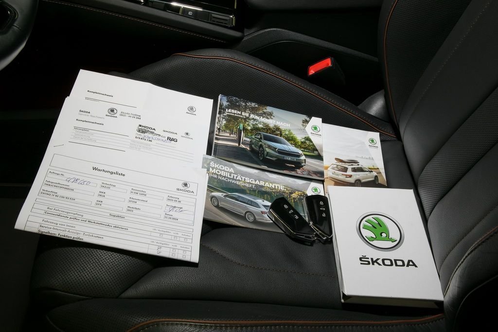 Vůz zálohován. VIN TMBJC9NY5PF008536. Aktuálně najeto 50 721 km. Záruka na baterie 8 let nebo 160 000 km. Proveden test baterie; k vozidlu certifikát zdarma. Vozidlo od autorizovaného dealera Škoda; původem z Německa po 1. majiteli. Servis pouze v autorizovaném servisu Škoda doložitelný servisní knihou. Garance počtu najetých km a původu v kupní smlouvě. K vozu veškerá palubní dokumentace; servisní kniha; 2x klíč od vozidla. Interiér v provedení kůže; Tepelné čerpadlo; Nezávislá klimatizace; Matrix LED světlomety; Originální tažné zařízení; Volba jízdního profilu; ACC - Adaptivní tempomat; Head-up Display; Kessy - Bezklíčové odemykání a startování; Třízónová automatická klimatizace; Vyhřívaná přední sedadla; Vyhřívaný volant; Area View - 360° kamera; Zadní parkovací kamera; Barevné ambientní osvětlení interiéru; Navigační systém; SmartLink - Android auto/Apple CarPlay; Originální litá kola R20. MOŽNÝ ODPOČET DPH.
