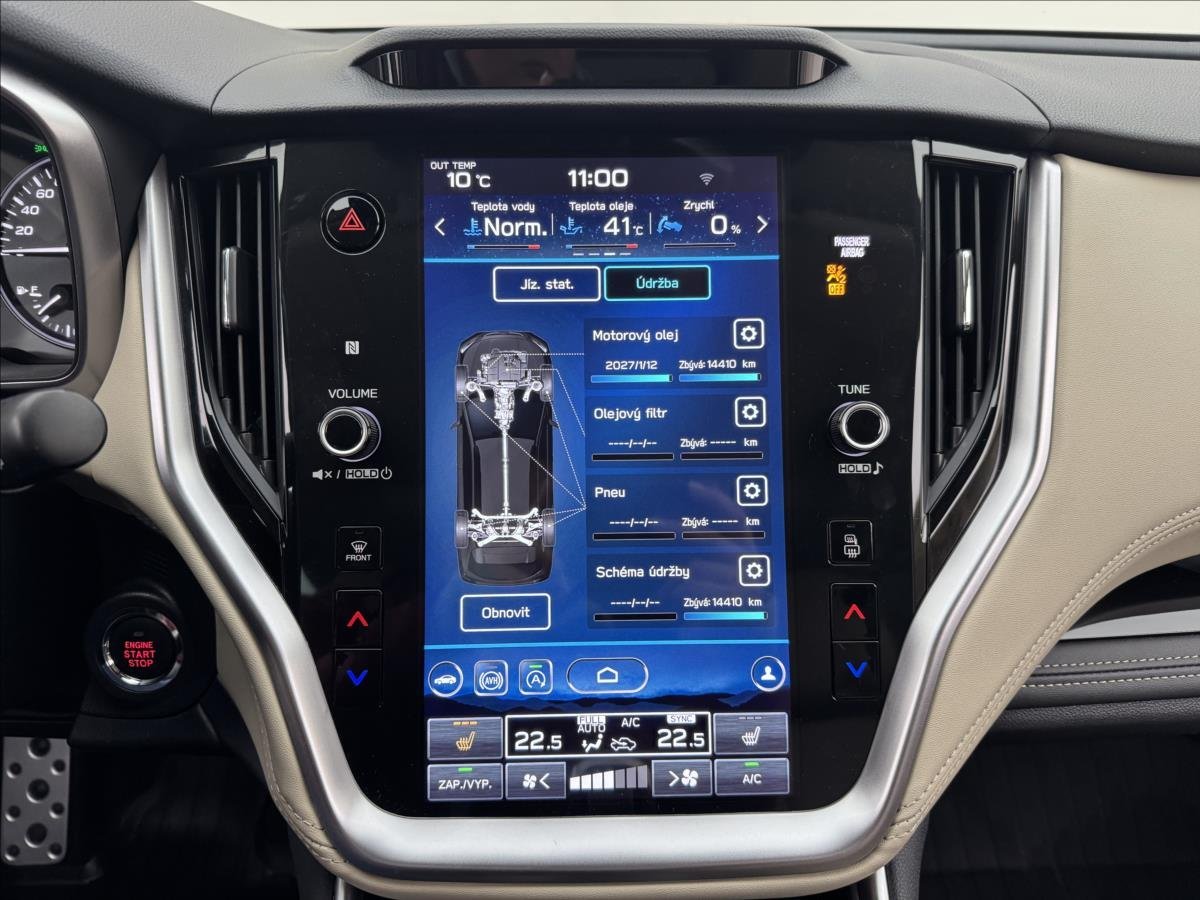První majitel; ** Vozidlo po servise 01/2026 - výměna mot. a převodového oleje; brzdovka a filtry * Odpočet dph * Prodloužená záruka 5 let / 200tkm a asistenční služby na 5 let * Koupeno v ČR * 1.Majitel * Touring * AWD * Harman/Kardon audio * Volba jízdního režimu X-mode * 360° kamera * Keyless * Tažné zařízení * Střěšní box Subaru * Letní a zimní sada ALU kol R18 * Automatická převodovka Lineartronic * Vyhřívaná sedadla p+z * Vyhřívaný multifunkční volant s řazením volantem; adaptivní tempomat; apple carplay/andorid auto; aux; bluetooth; usb; isofix; brzdový as.; as. jízdního pruhu a mrtvého úhlu; as. únavy řidiče; kožená sedadla; parkovací senzory; střešní okno; střešní pevnostní příčníky; boční lišty; lapače nečistot; ochrana karoserie pod klikou dvěří; ochrana nakládací hrany; plašička na kuny ** Pravidelný servis. K vozidlu možno pořídit prodlouženou záruku až na 3 roky bez omezení počtu najetých kilometrů. Možnost výhodného úvěrového financování. Podrobné informace vám rádi poskytneme na tel.č. 728 666 111; 728 666 333.