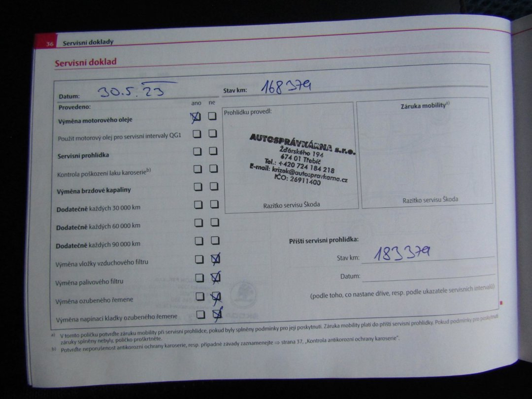 - Servisní knížka
