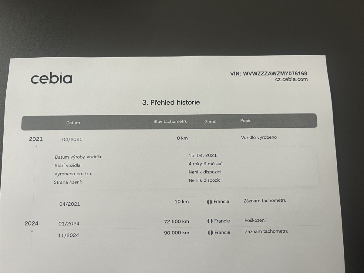Historie vozidla