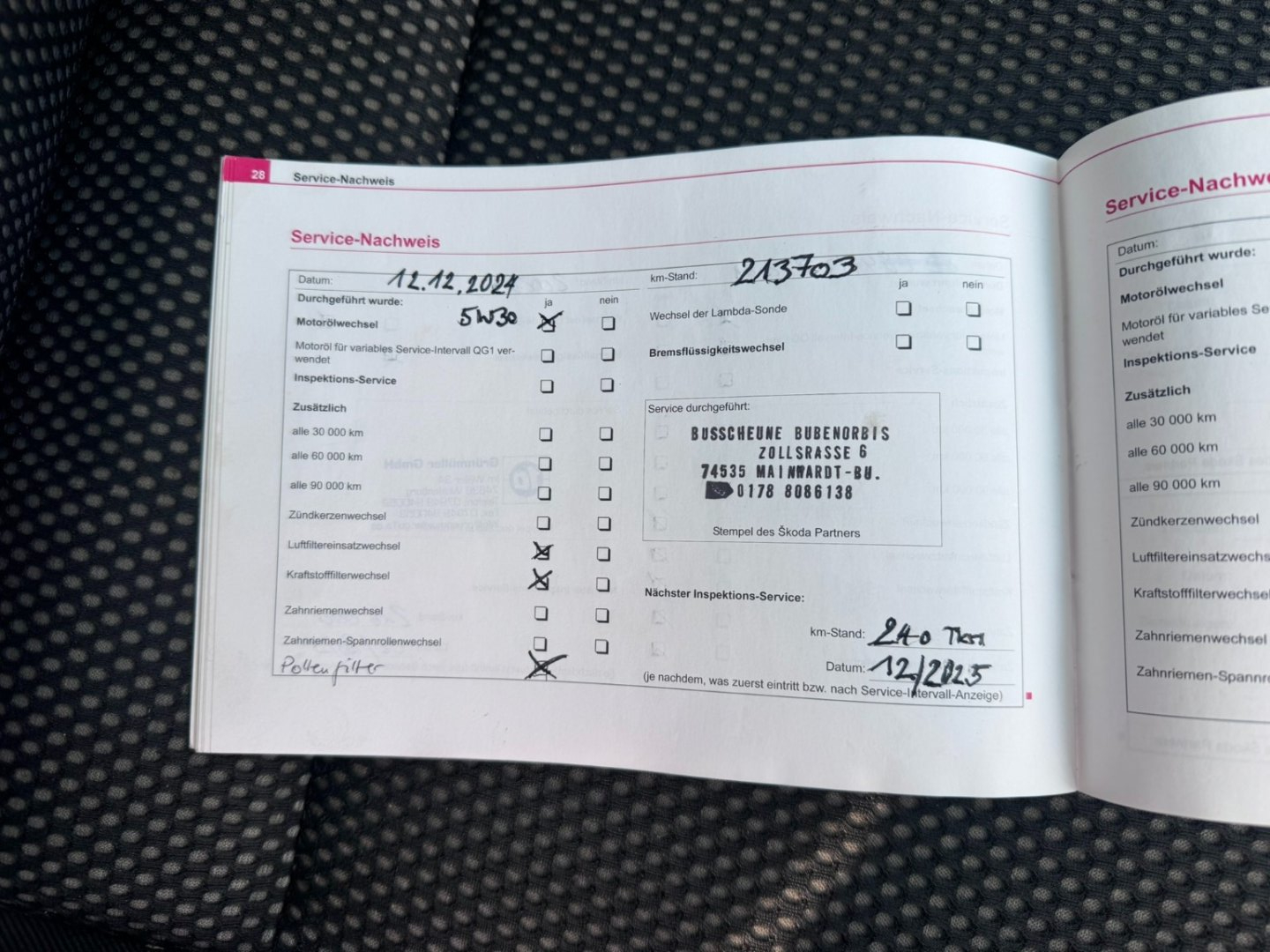- Servisní knížka