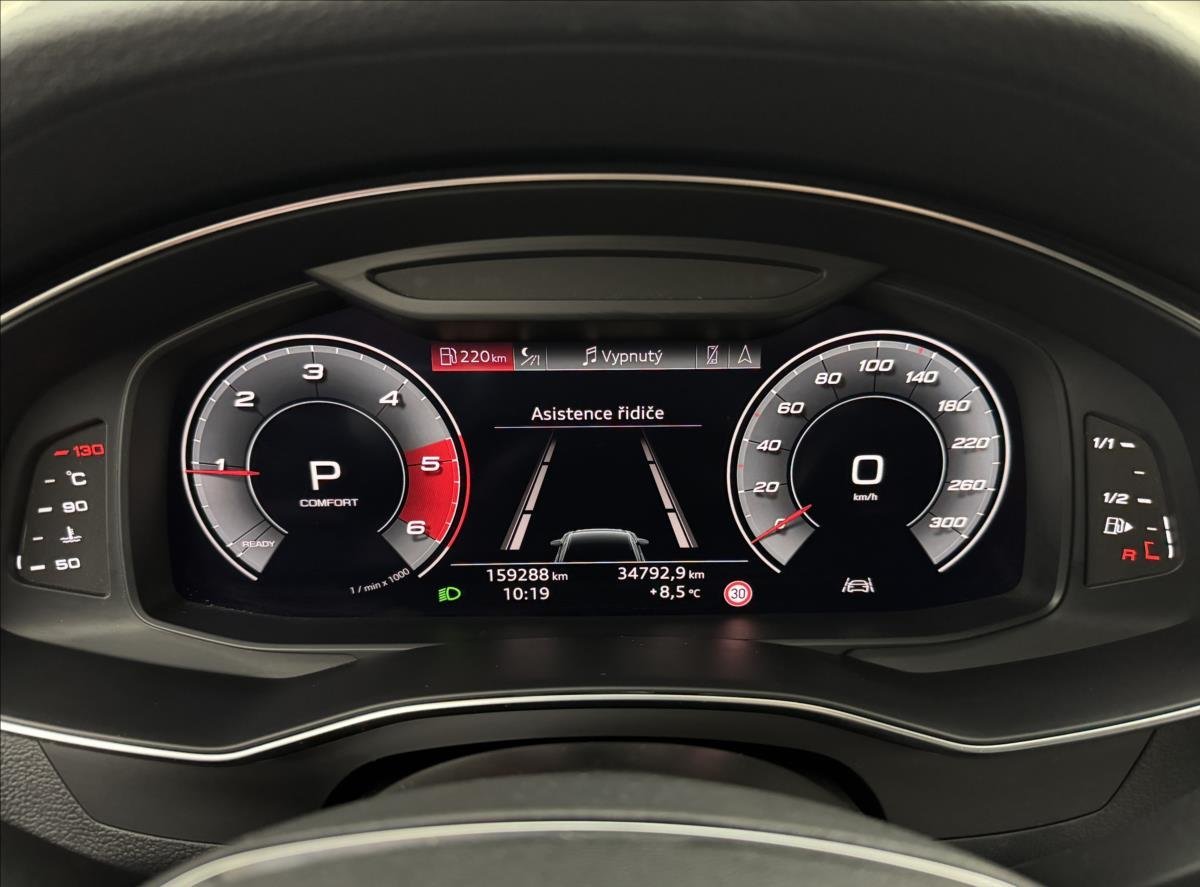 Vnitřní výbava a komfort Ambientní LED osvětlení interiéru, Klimatizace aut. , Klimatizace čtyřzónová, Deaktivace airbagu spolujezdce, Dřevěné obložení, El. sklopná zrcátka, El. parkovací brzda, Multifunkční volant, Nastavitelný volant, Nezávislé topení, Posilovač řízení, Pádla řazení na volantu, Senzor opotřebení brzd. destiček, Senzor stěračů, Senzor tlaku v pneumatikách, Venkovní teploměr, Vyhřívaná zrcátka, Vyhřívaný volant