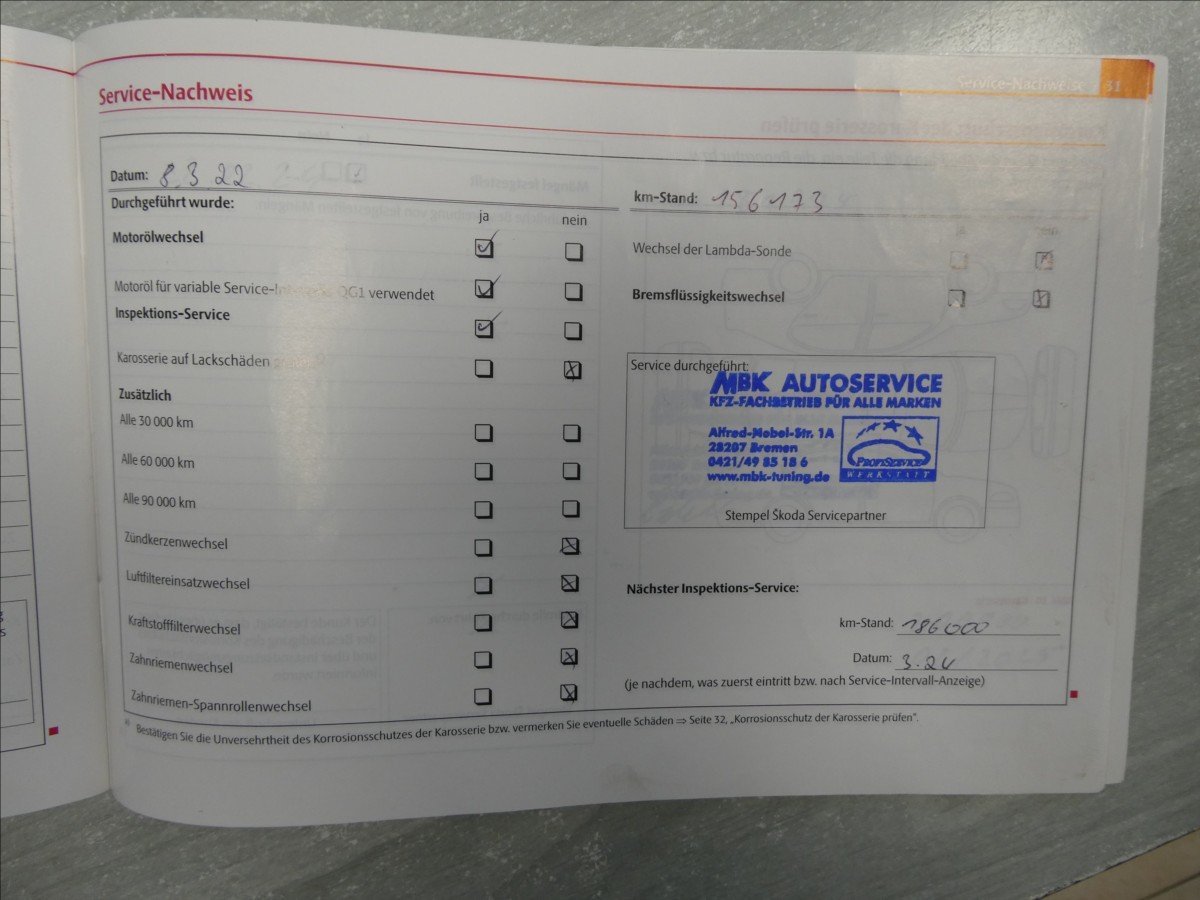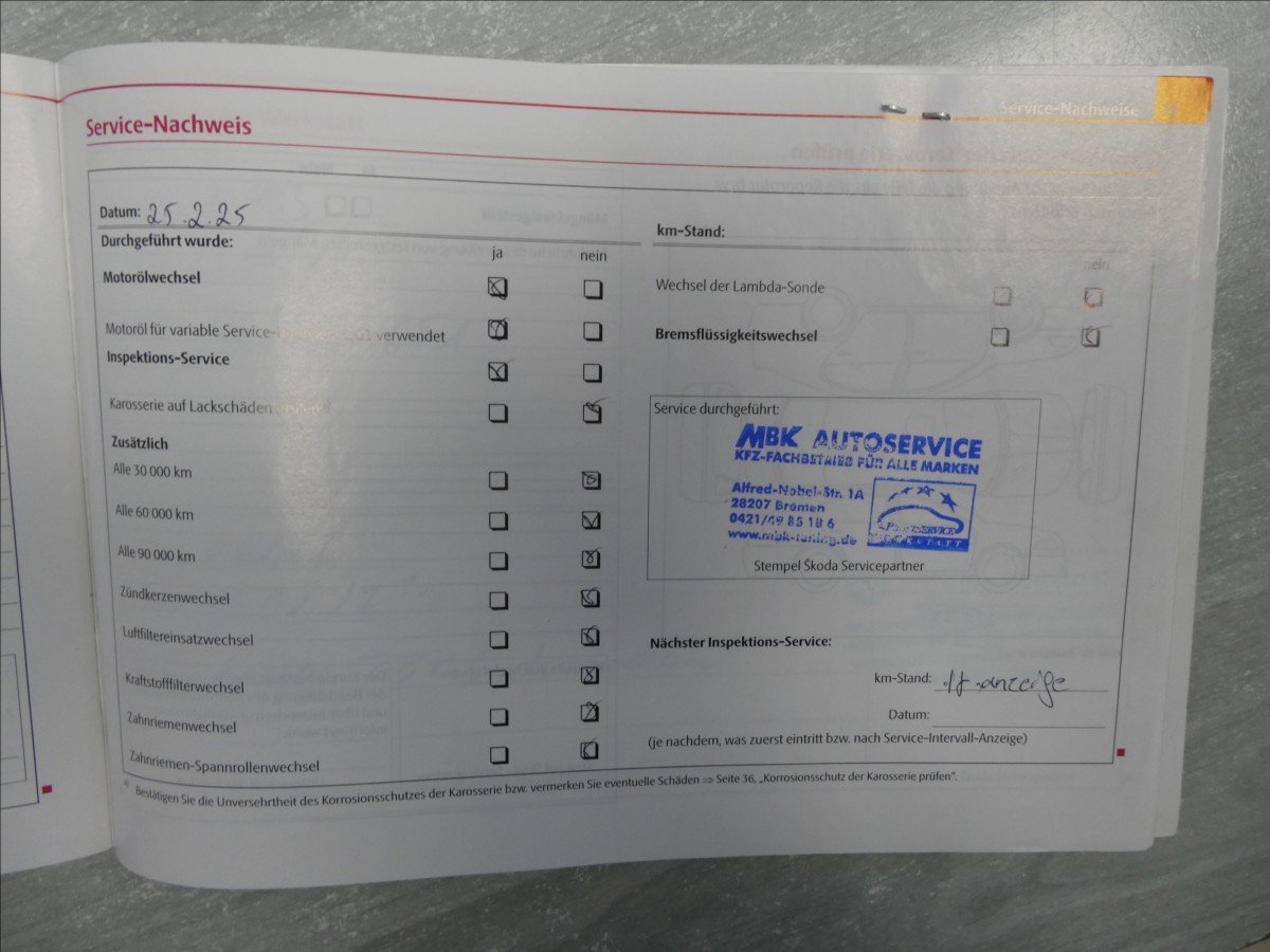 - Servisní knížka