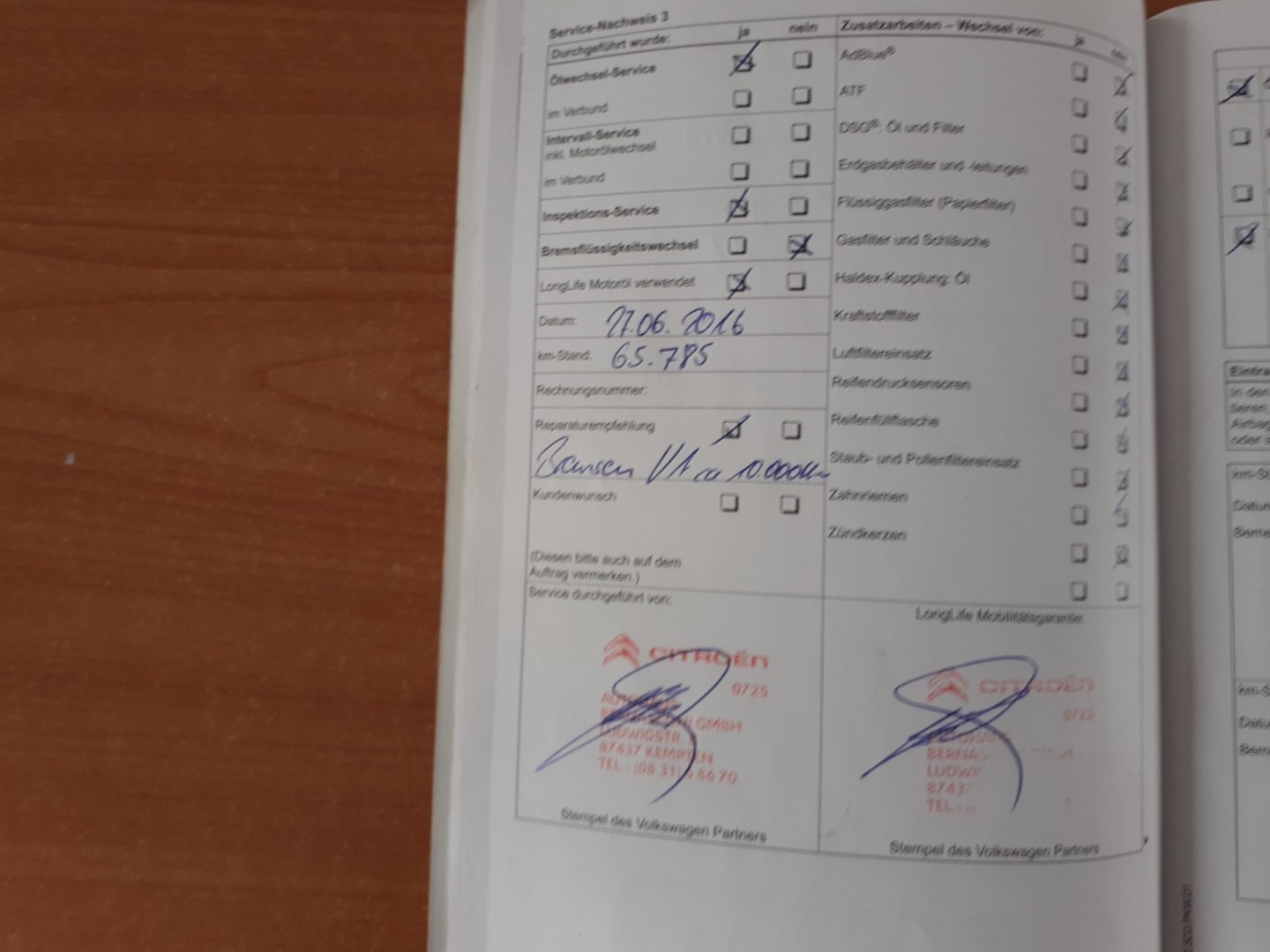 Servisní knížka, PO SERVISU!