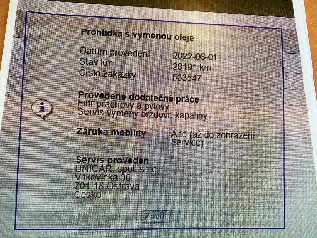 | Zabezpečení vozidla | Dálkové centrální zamykání, Imobilizér |