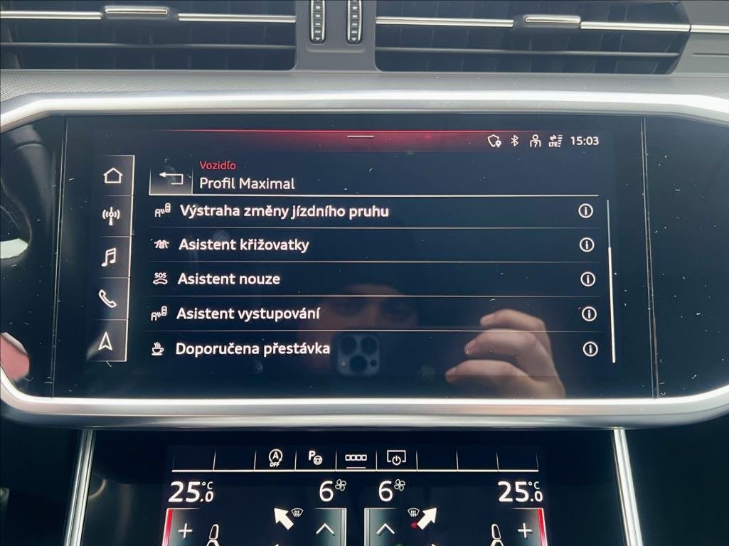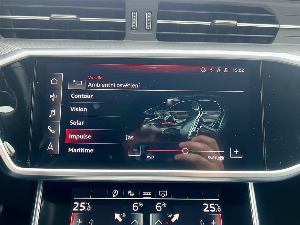 | Vnitřní výbava a komfort | Ambientní LED osvětlení interiéru, Klimatizace aut. , Bezklíčkové ovládání, Deaktivace airbagu spolujezdce, El. sklopná zrcátka, El. startér, El. parkovací brzda, Klimatizovaná přihrádka, Multifunkční volant, Nastavitelný volant, Nezávislé topení, Posilovač řízení, Senzor opotřebení brzd. destiček, Senzor stěračů, Senzor tlaku v pneumatikách, Střešní okno, Venkovní teploměr, Vyhřívaná zrcátka, Zadní loketní opěrka, Klimatizace čtyřzónová, Pádla řazení na volantu |