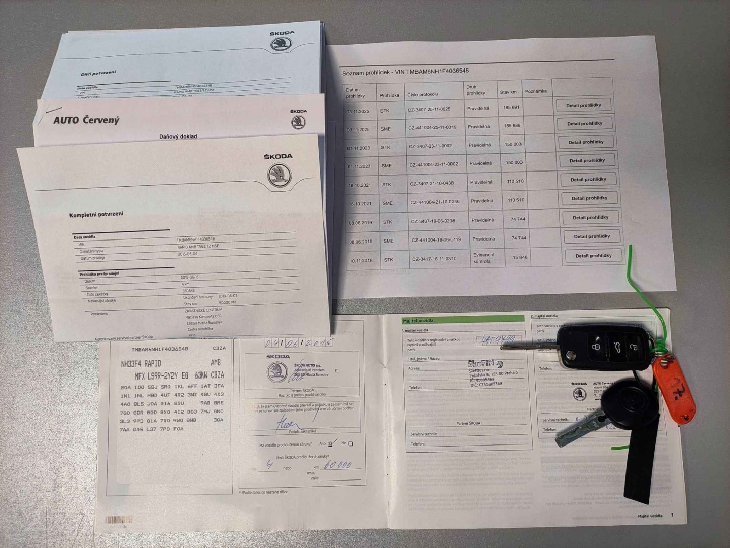 Zprostředkování prodeje, Servisní kniha, 2x klíče,