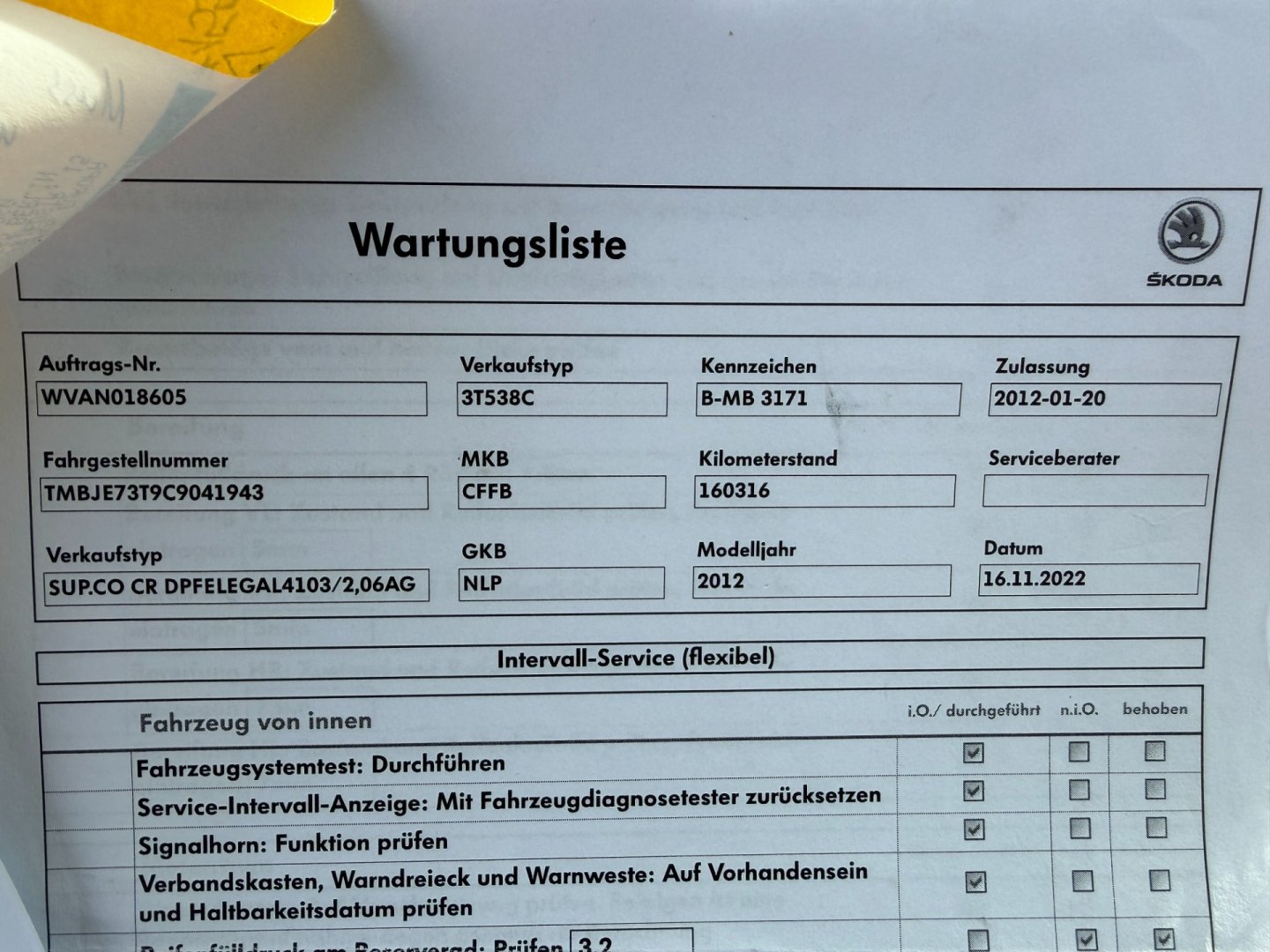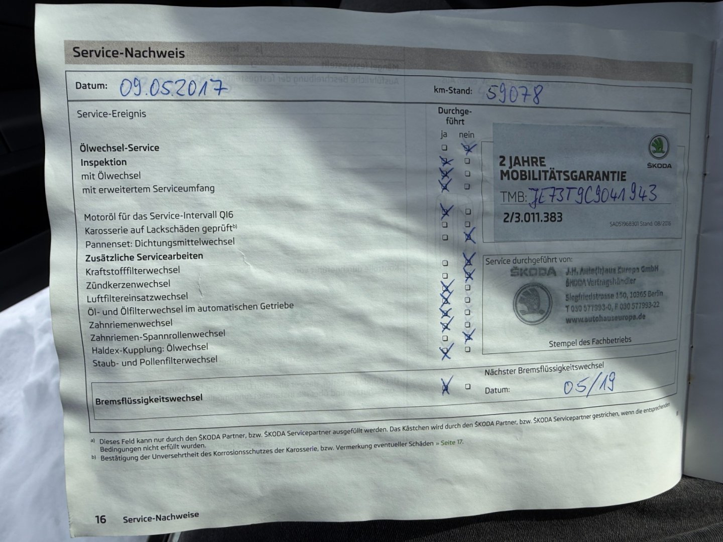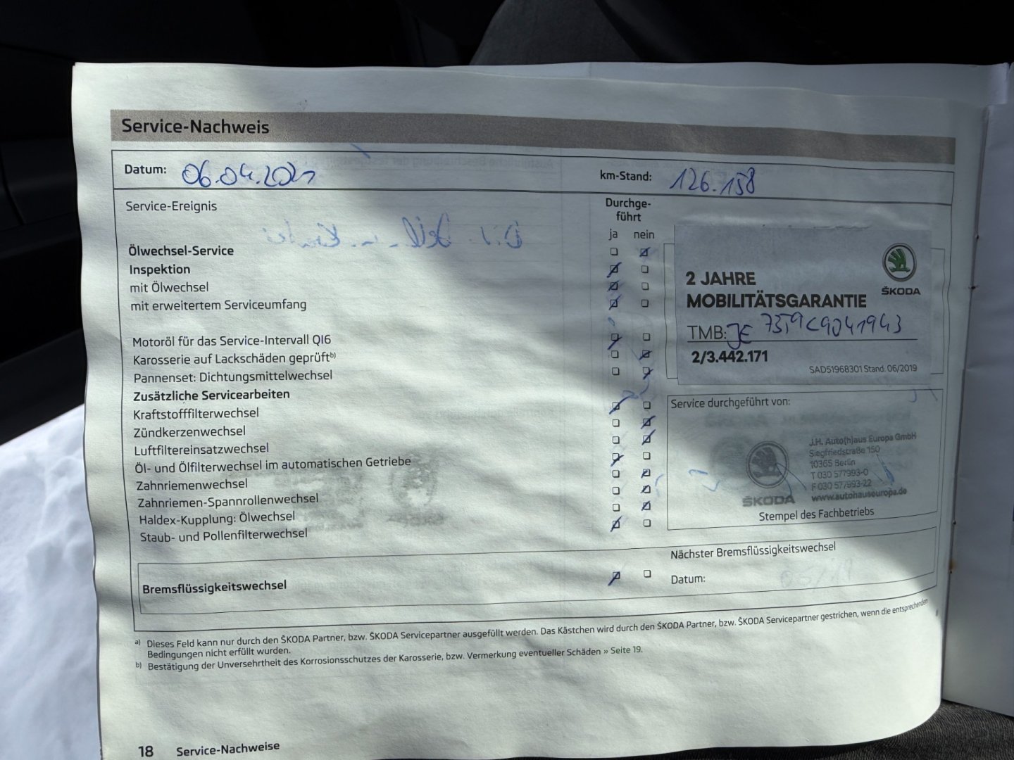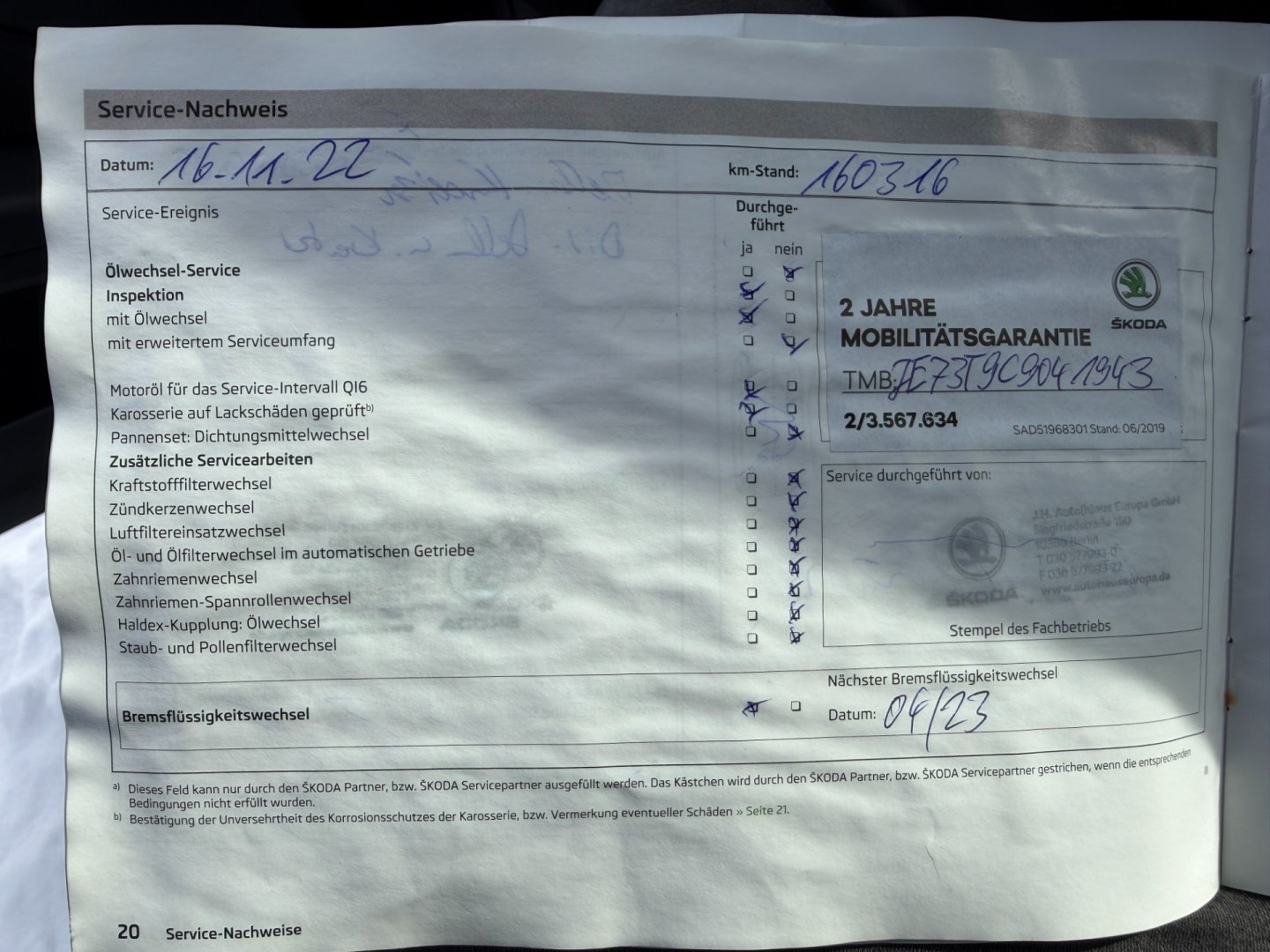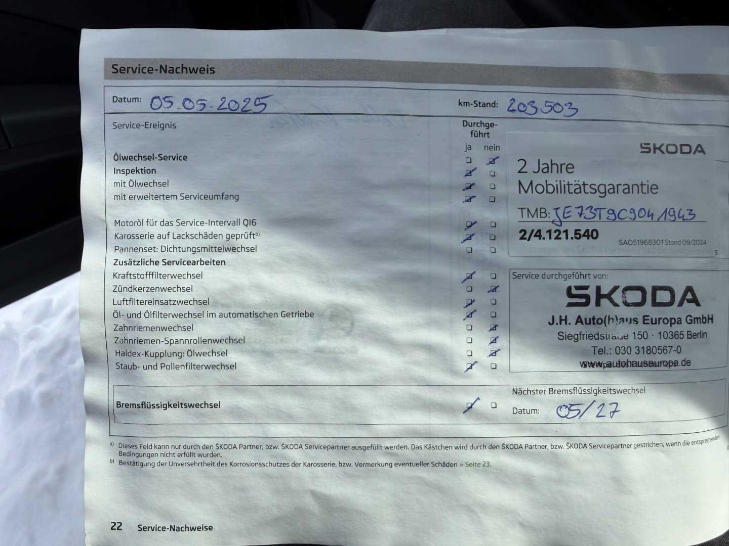 • Servisní knížka