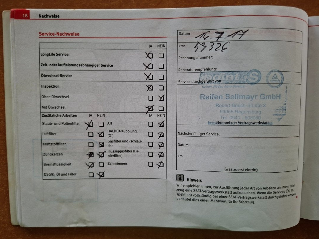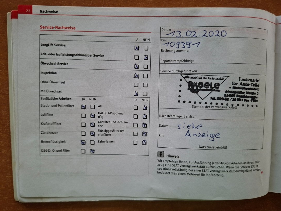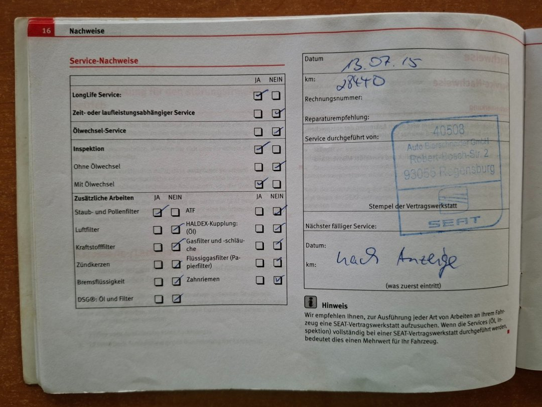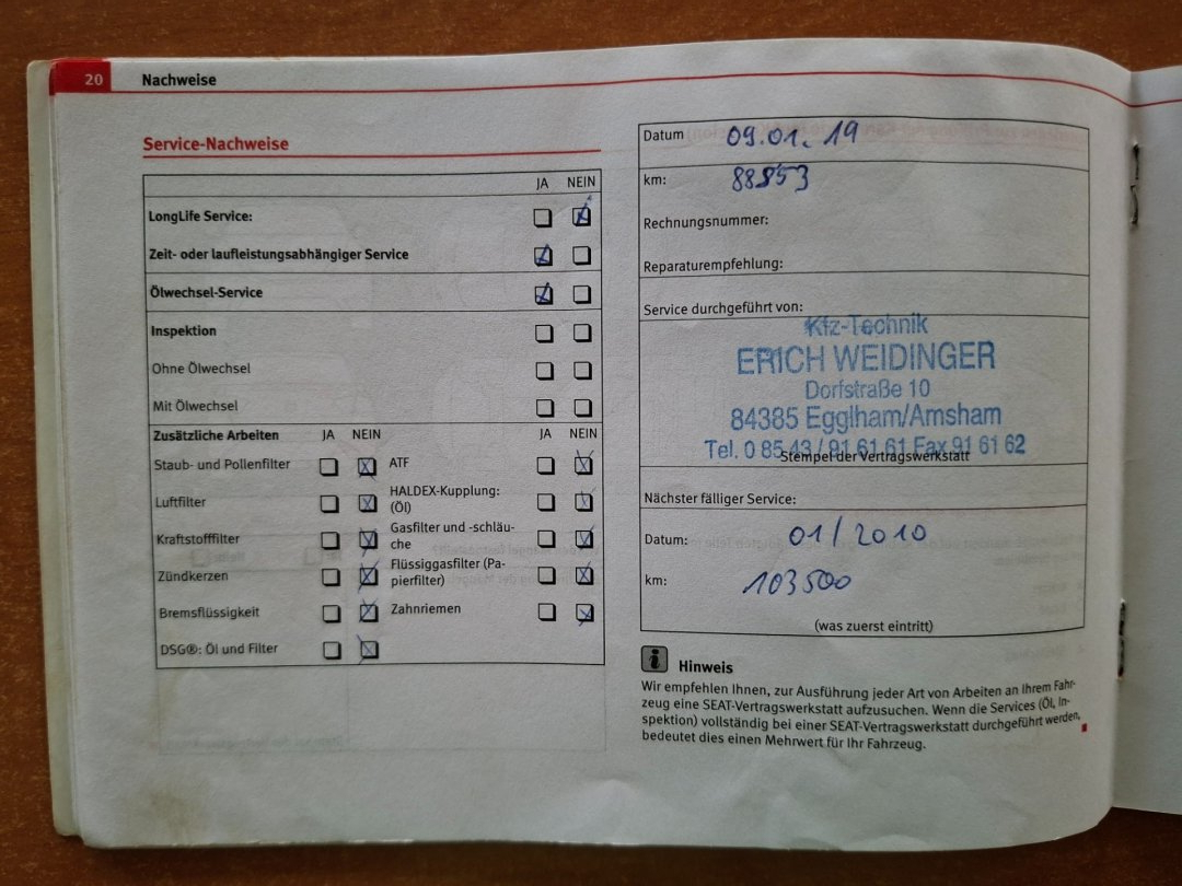 - Servisní knížka