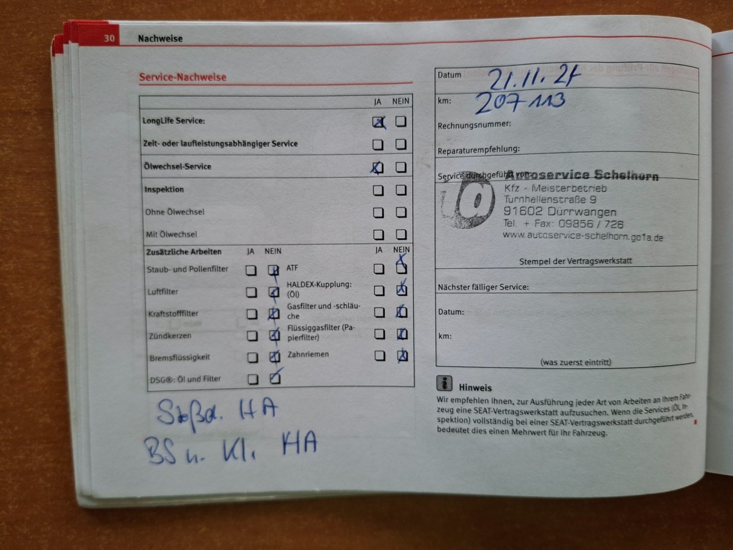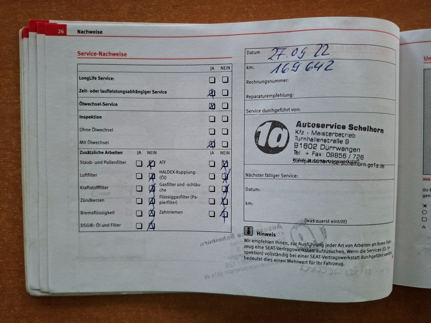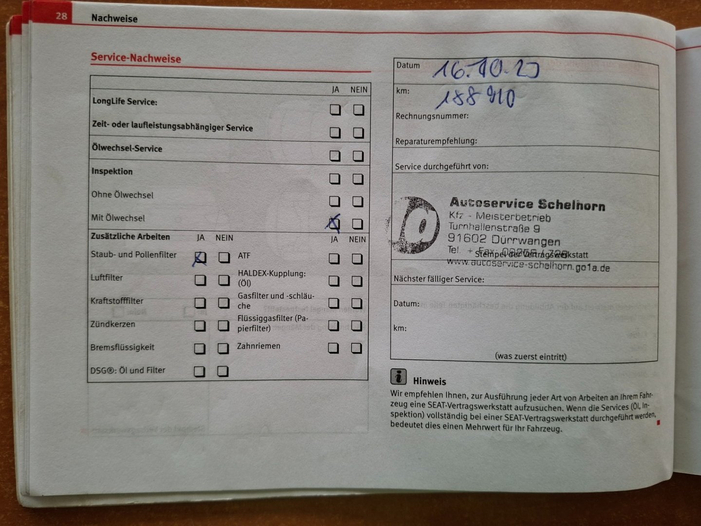 - Servisní knížka