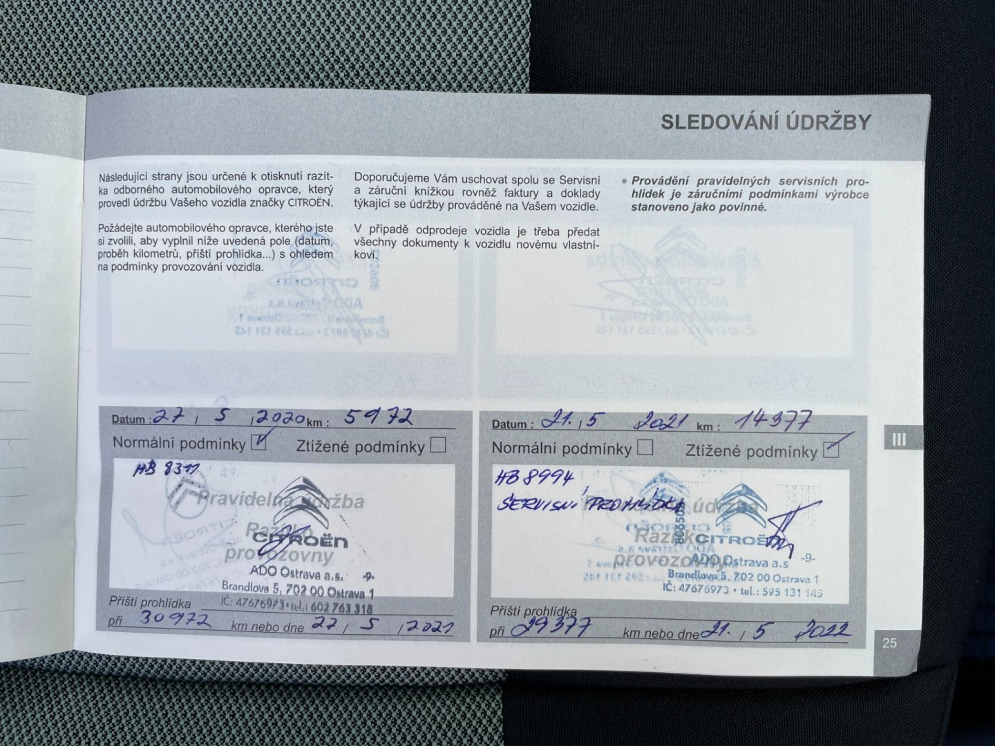 - Servisní knížka