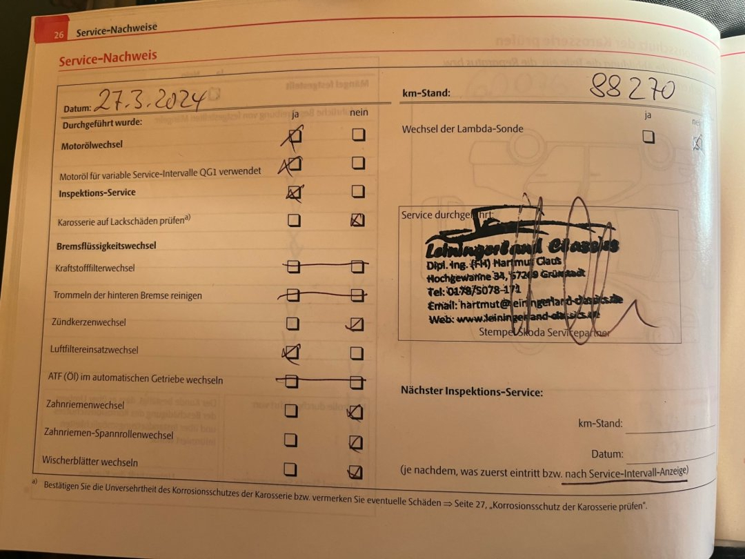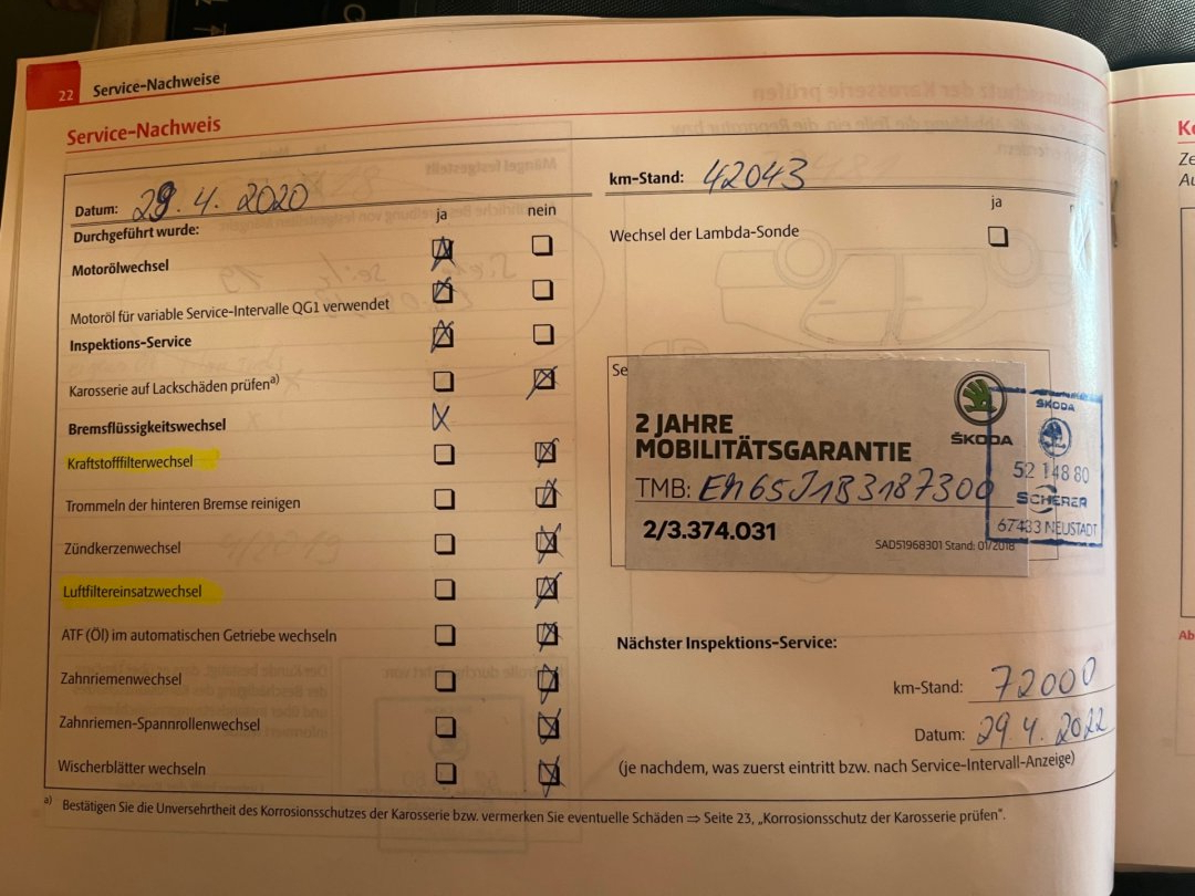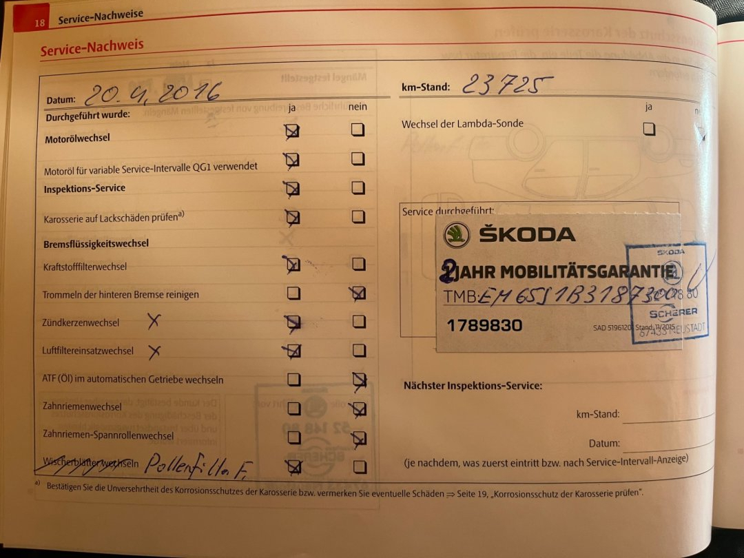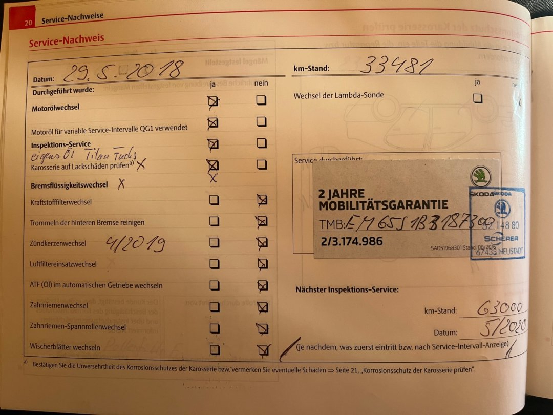 • Servisní knížka