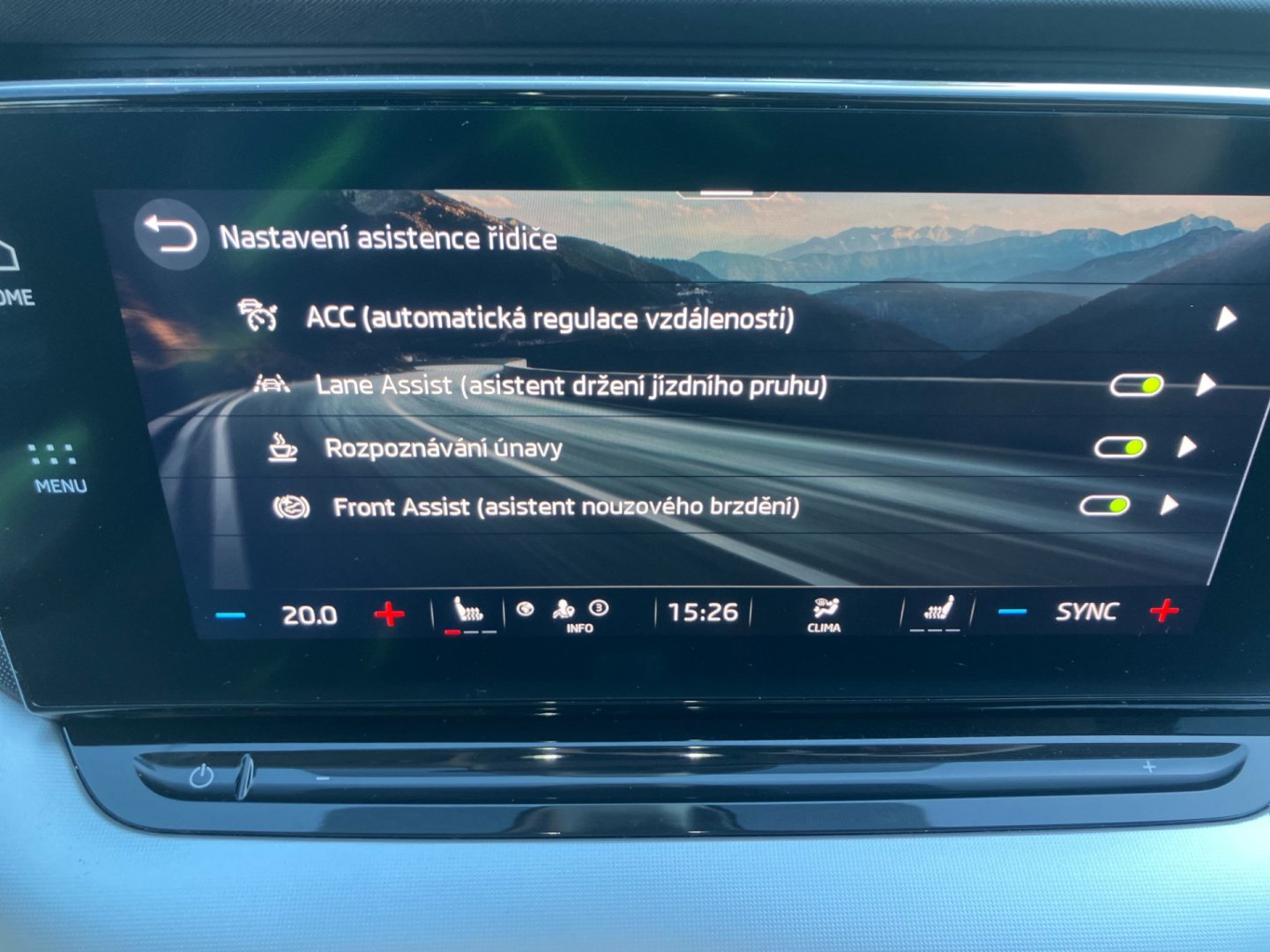 | Asistenční systémy | Adaptivní tempomat, Asistent rozjezdu do kopce, Parkovací senzory zadní, Tempomat |