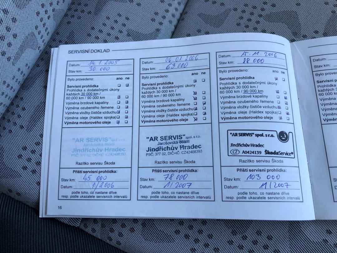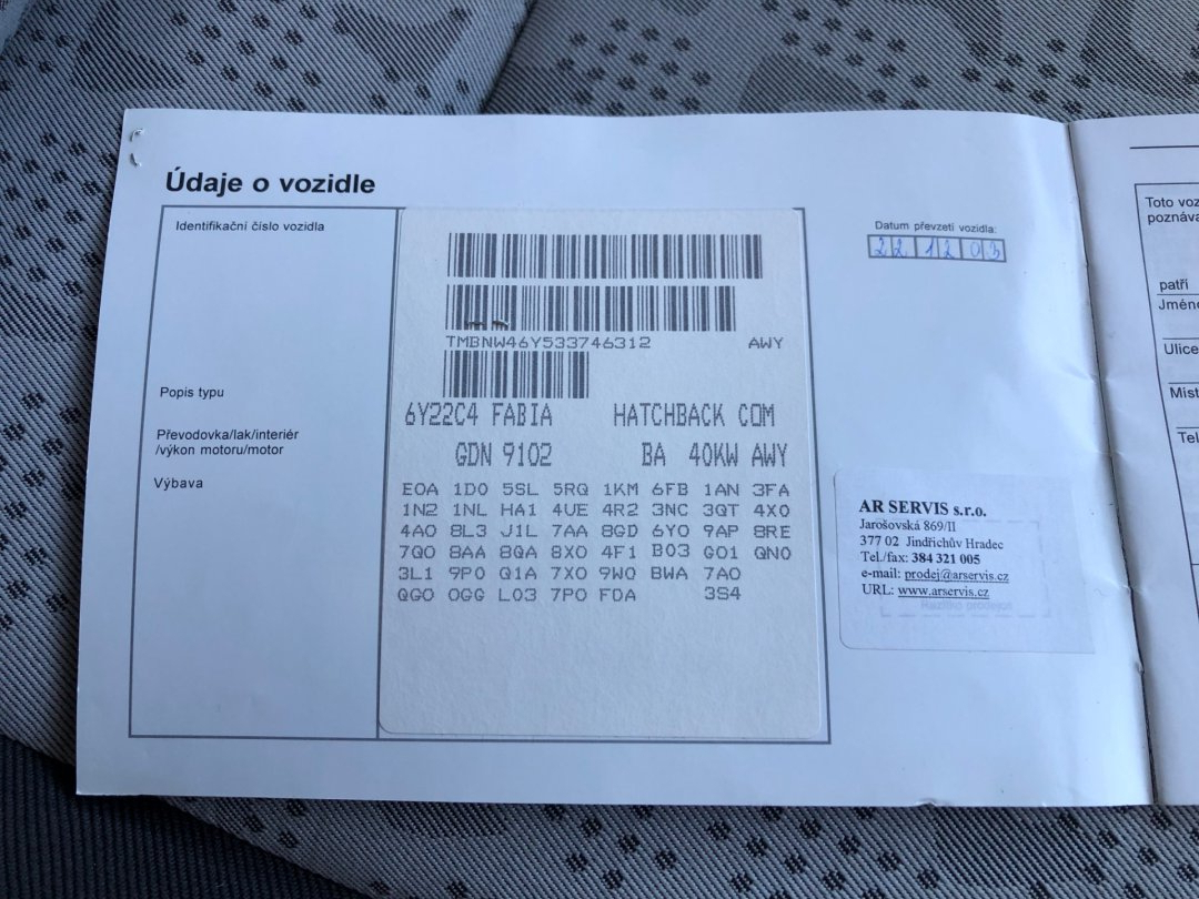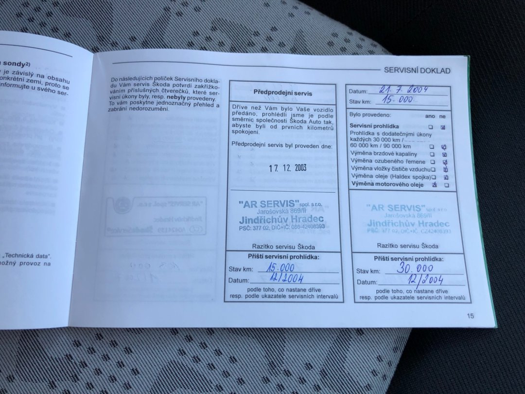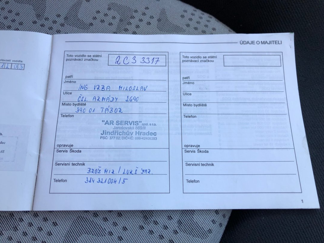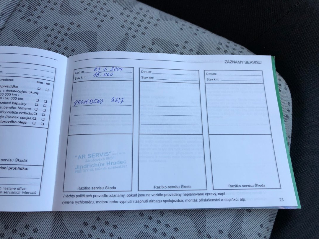 • Servisní knížka