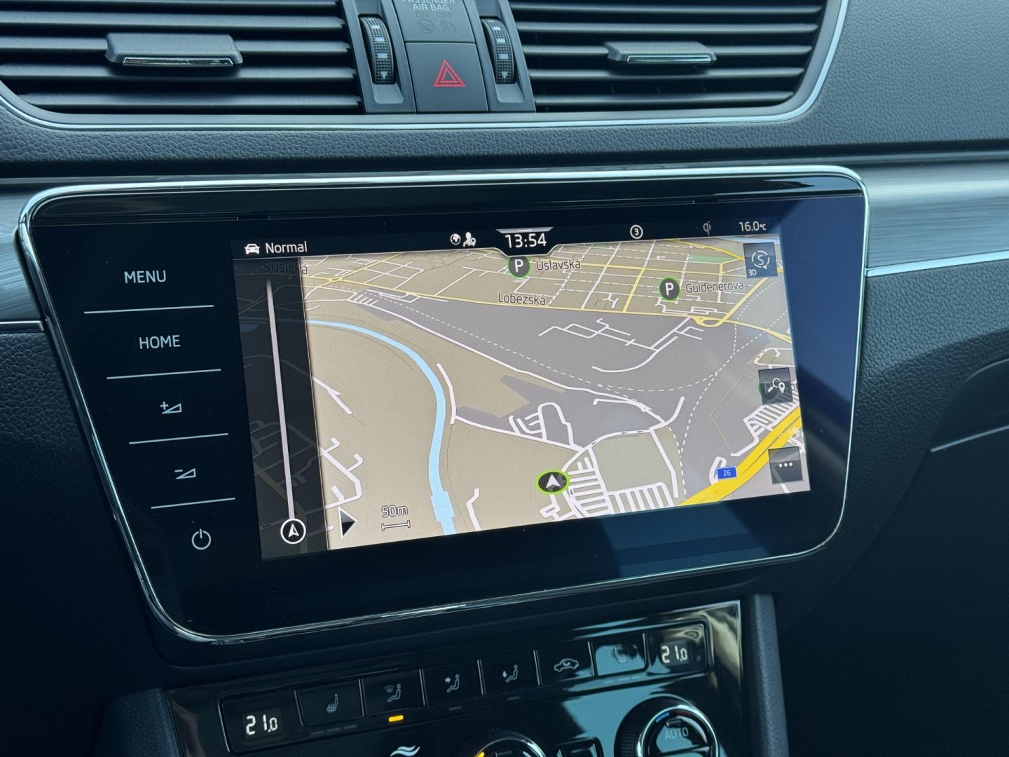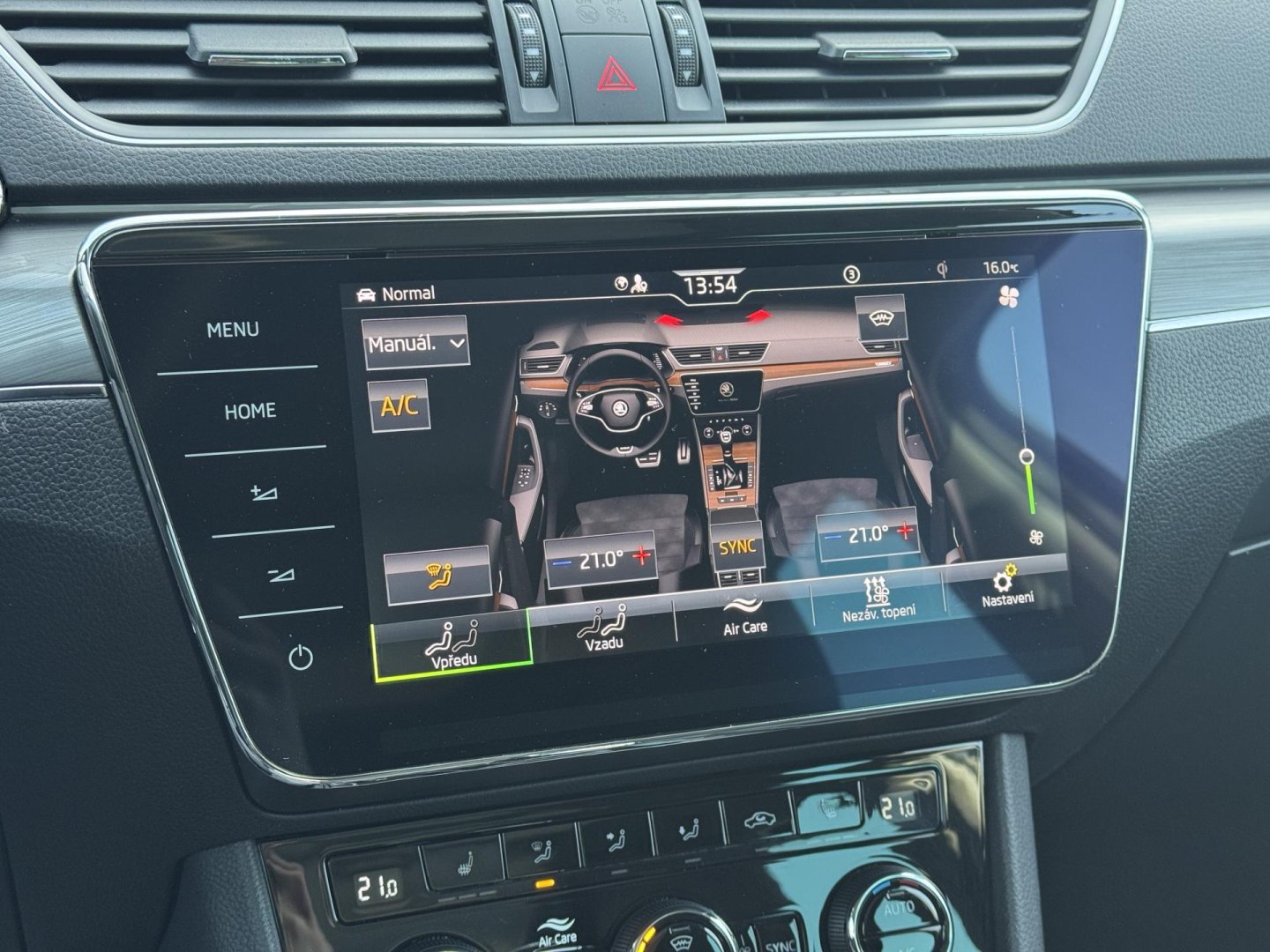 Vnitřní výbava a komfort Posilovač řízení, Klimatizace dvouzónová, Klimatizace aut. , Nezávislé topení, Nezávislé topení s čas. předehřívačem, El. parkovací brzda, Bezklíčkové ovládání, Senzor stěračů, Nastavitelný volant, Multifunkční volant, Vyhřívaný volant, Pádla řazení na volantu, Deaktivace airbagu spolujezdce, El. ovládaný kufr, El. ovládání oken, El. přední okna, El. ovládání zrcátek, Kožené čalounění, Senzor tlaku v pneumatikách, Vyhřívaná zrcátka, Vyhřívané čelní sklo, Vyhřívané trysky ostřikovačů skla, Zadní loketní opěrka, Roletky na zadní okna, El. startér
