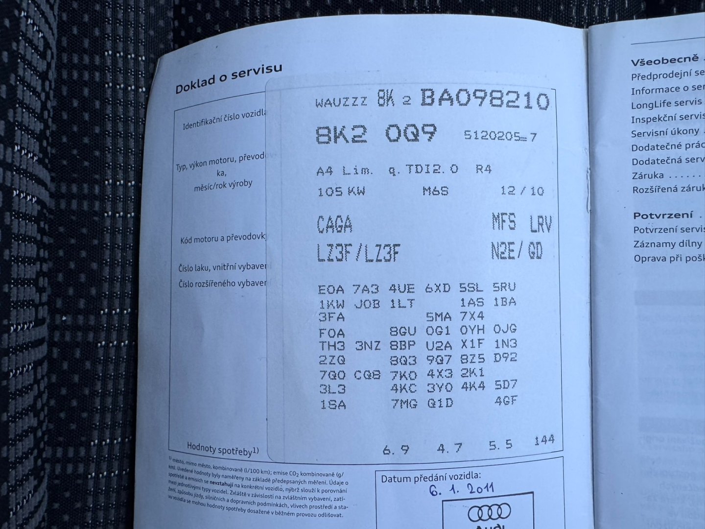 - Servisní knížka