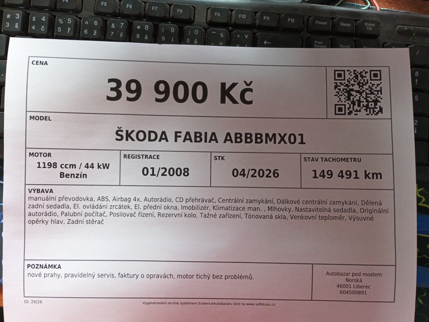nové prahy, pravidelný servis, faktury o opravách, motor tichý bez problémů.