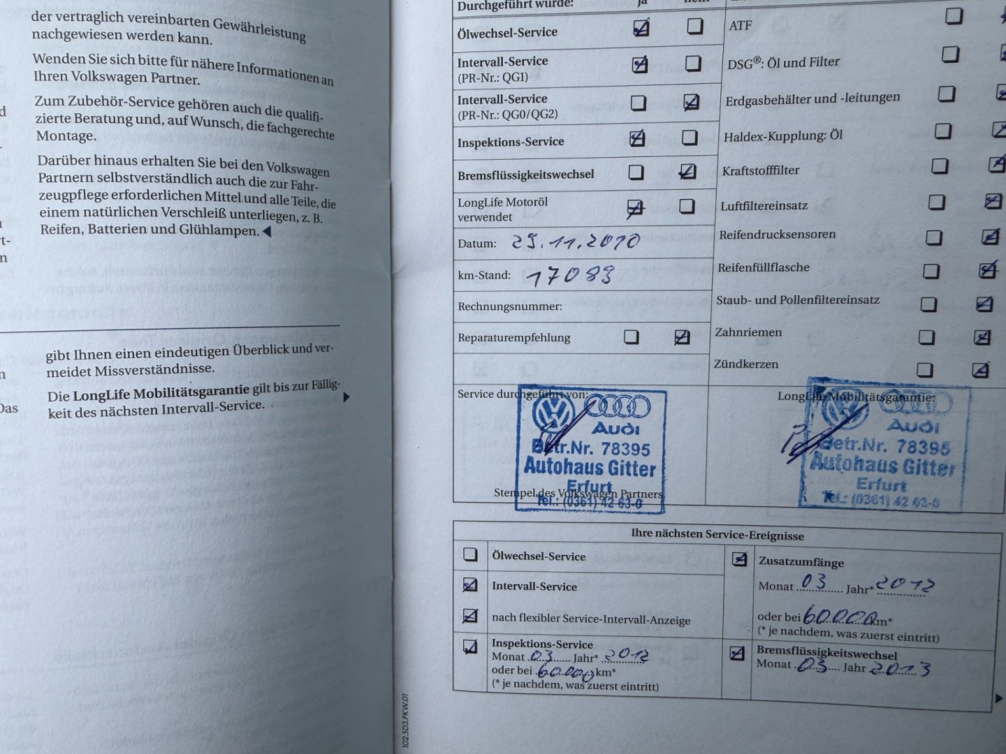 • Servisní knížka