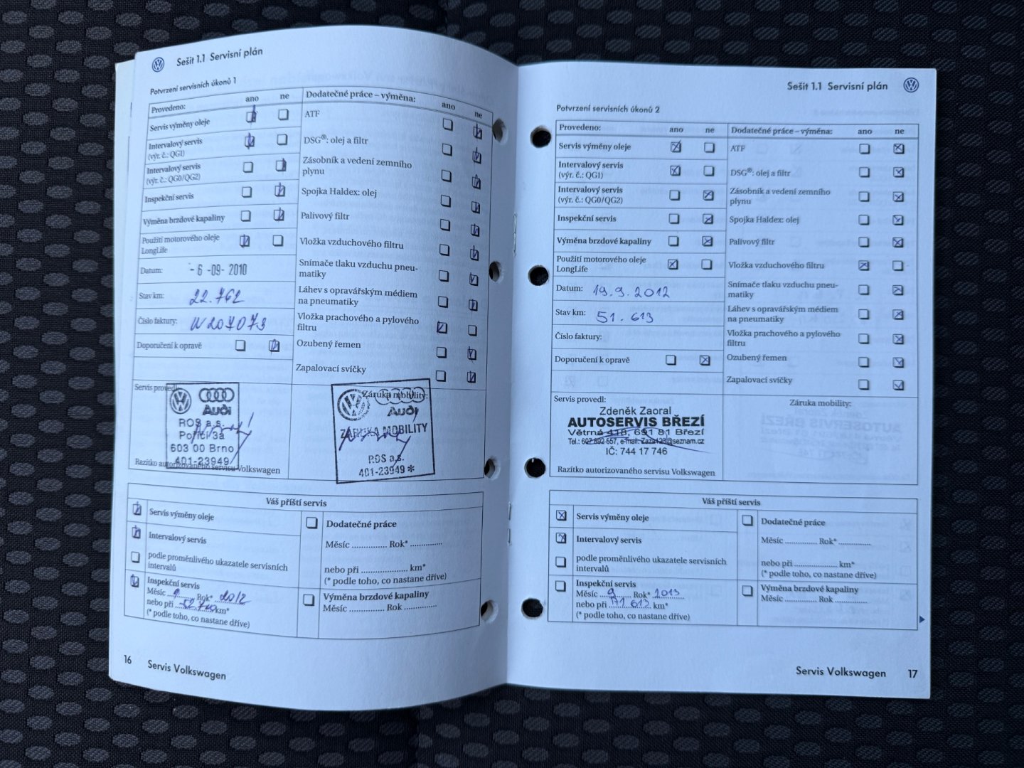 • Servisní knížka