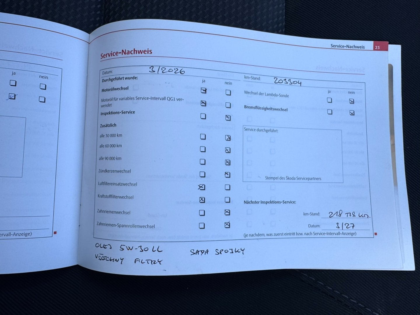 • Servisní knížka