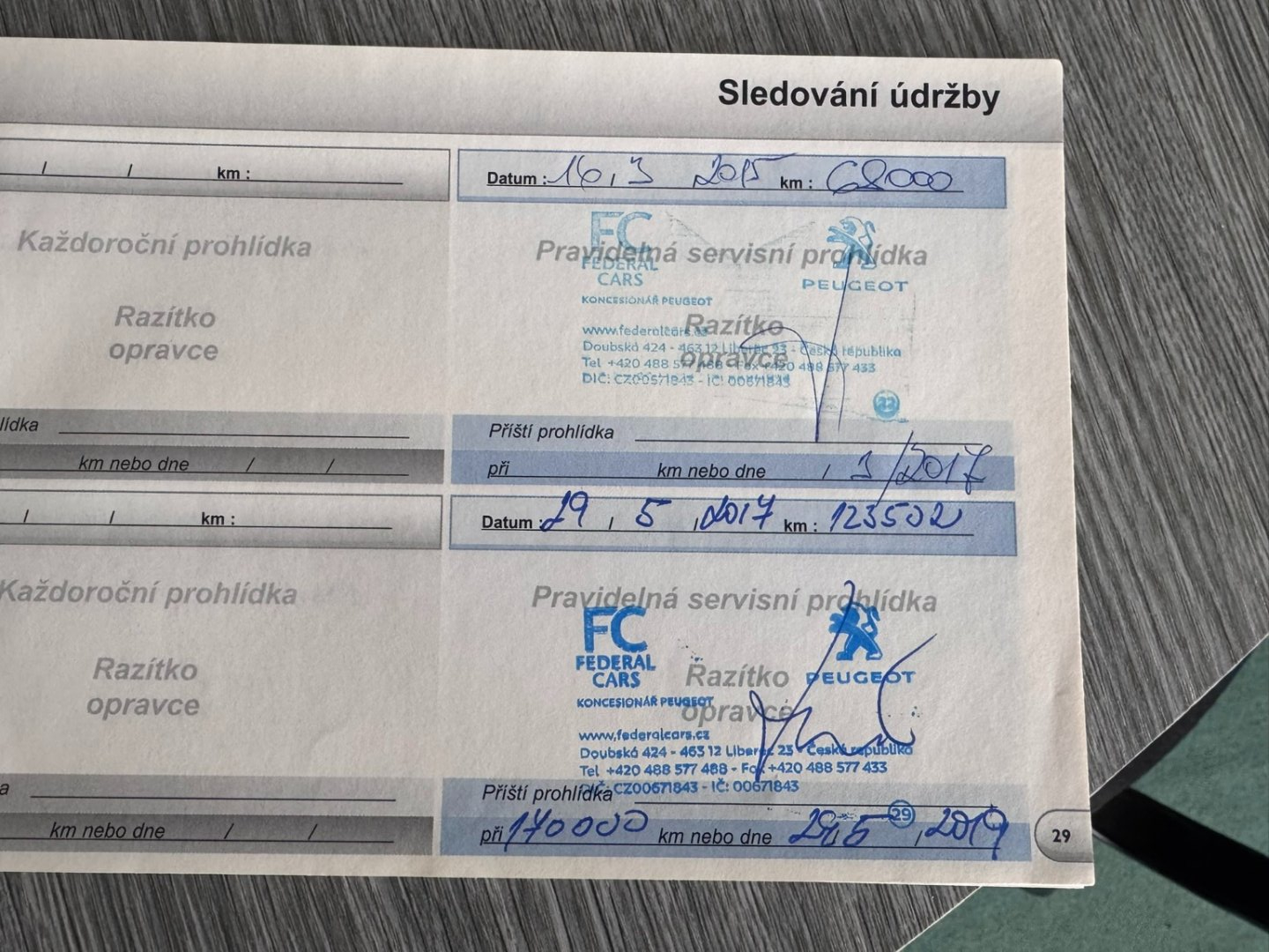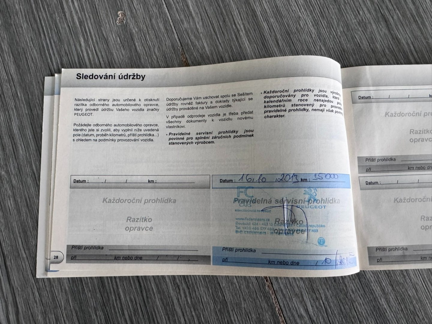 - Servisní knížka