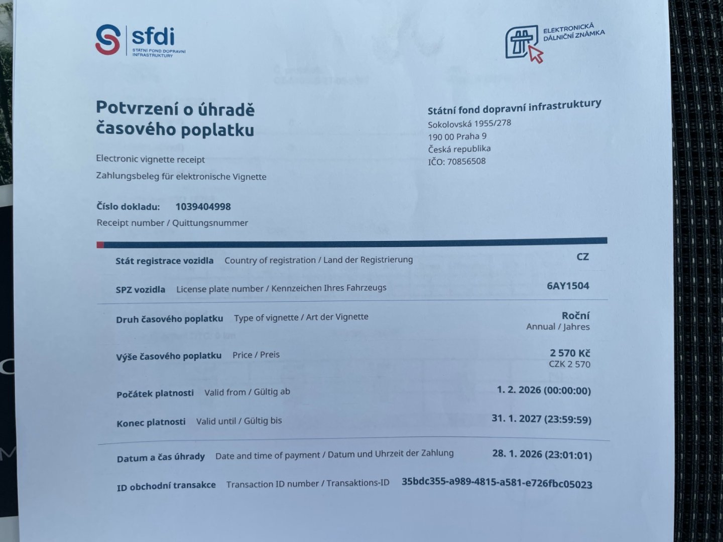| Zabezpečení vozidla | Dálkové centrální zamykání, Imobilizér |