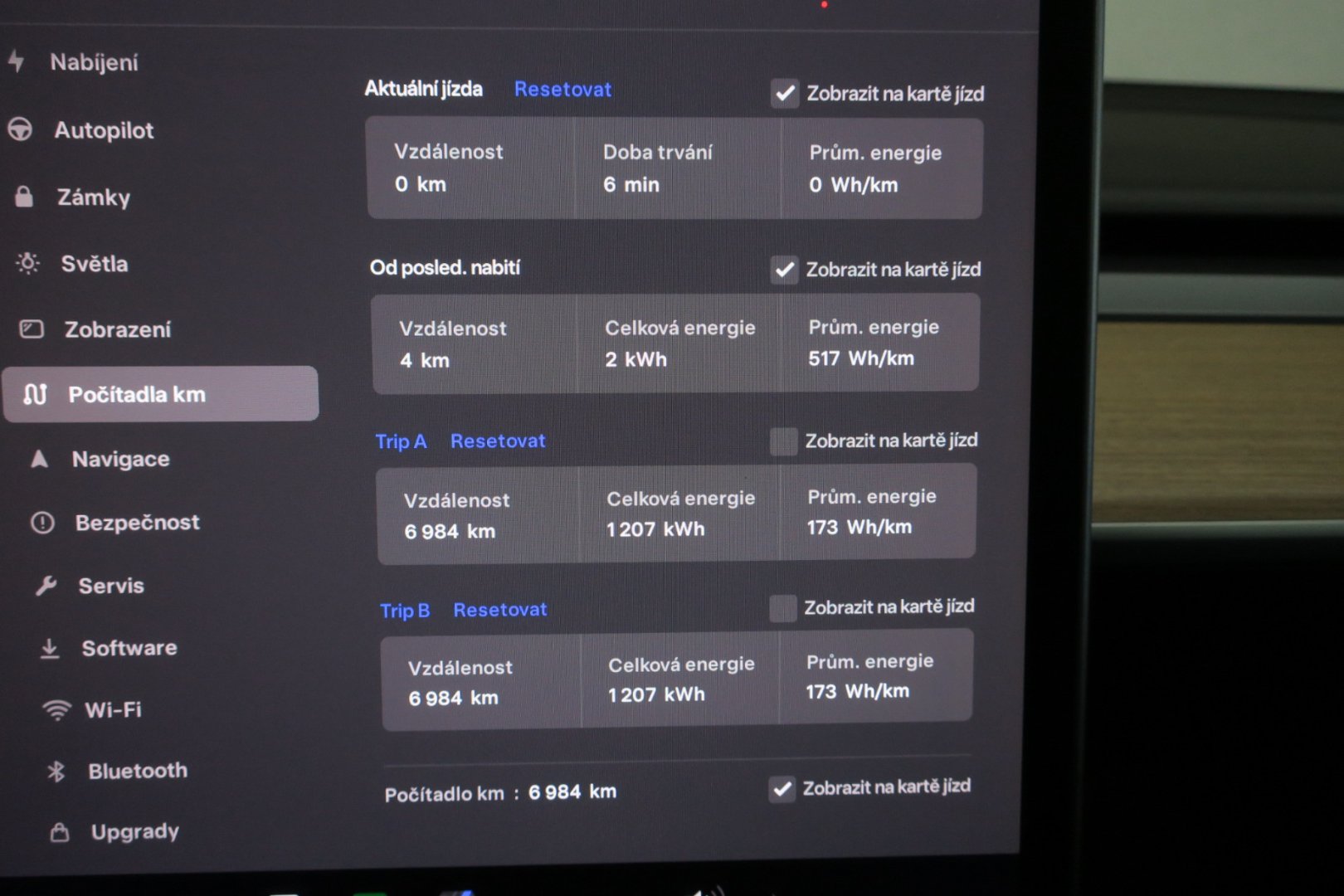 Parametry vozidla