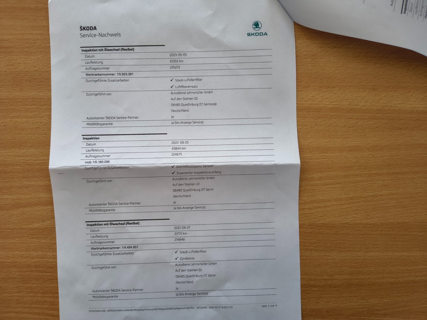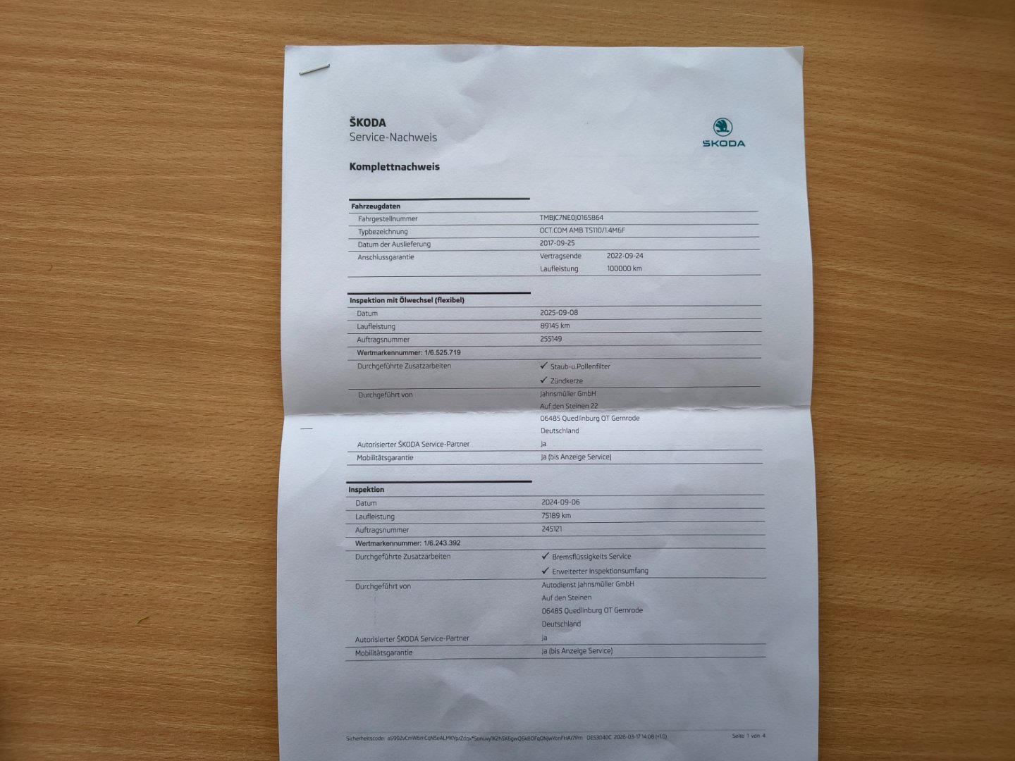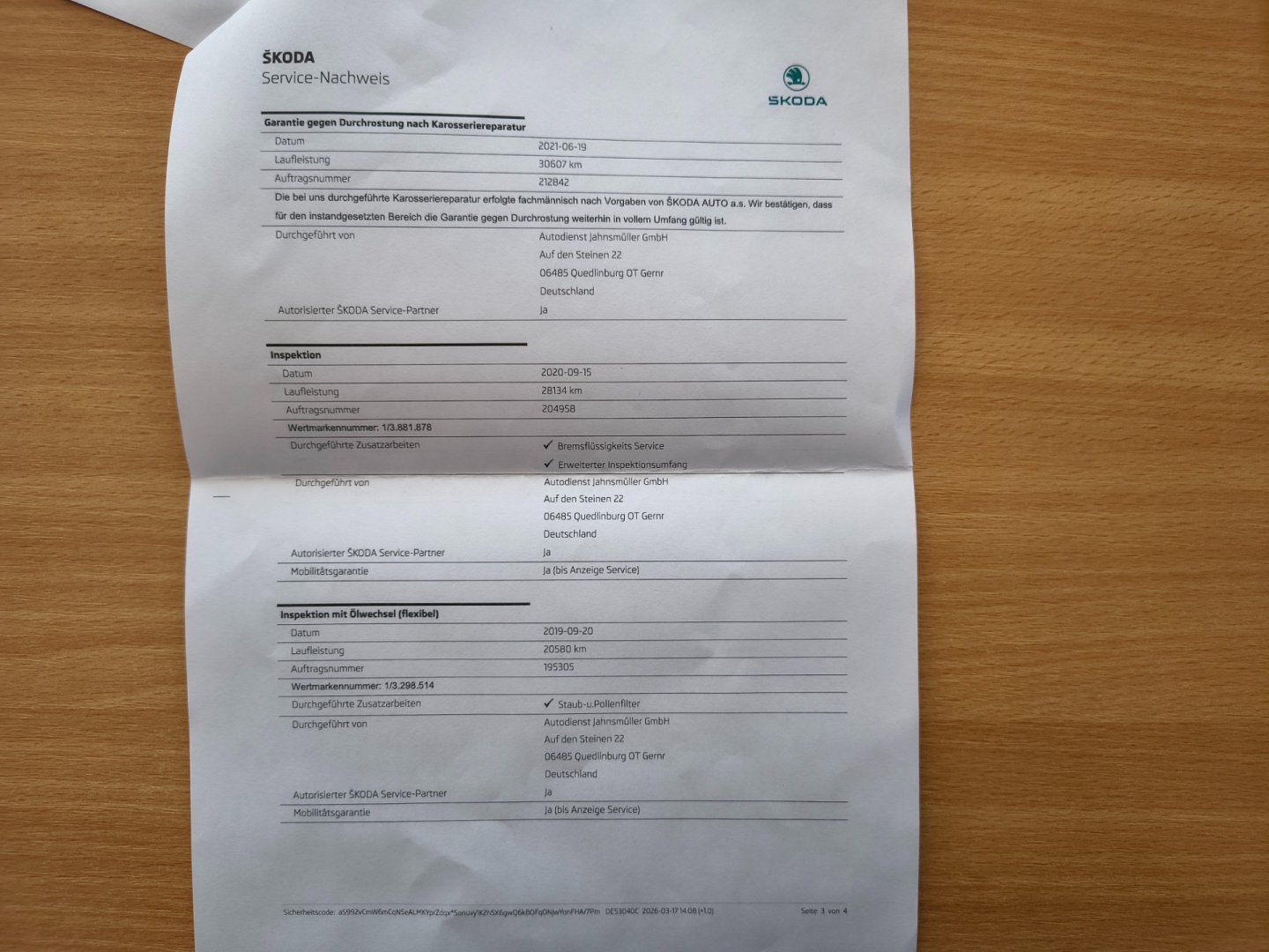 1. Majitel, Nehavarované, Servisní knížka, pravidelný servis u Škoda SRN