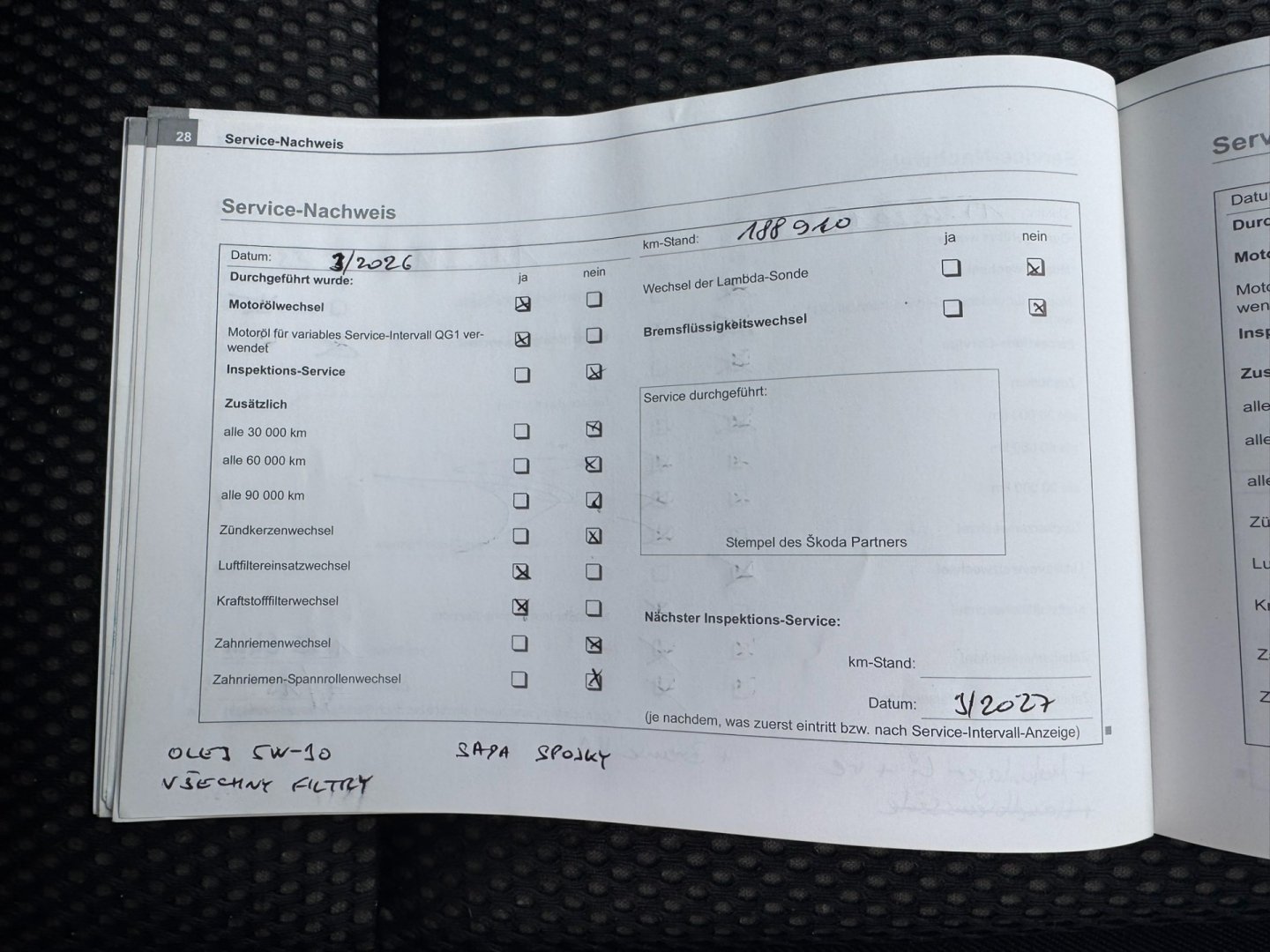 • Servisní knížka
