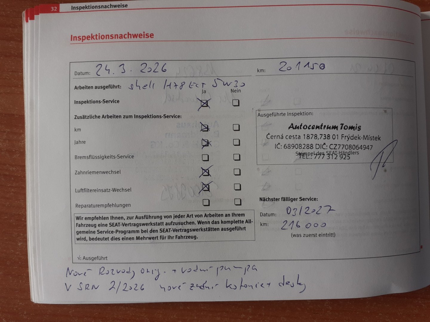 Servisní knížka ,PO SERVISU -NOVÉ ROZVODY +OLEJ ,FILTRY. NOVÉ ZADNÍ KOTOUČE + DESKY ! 6 RYCHLOSTNÍ !