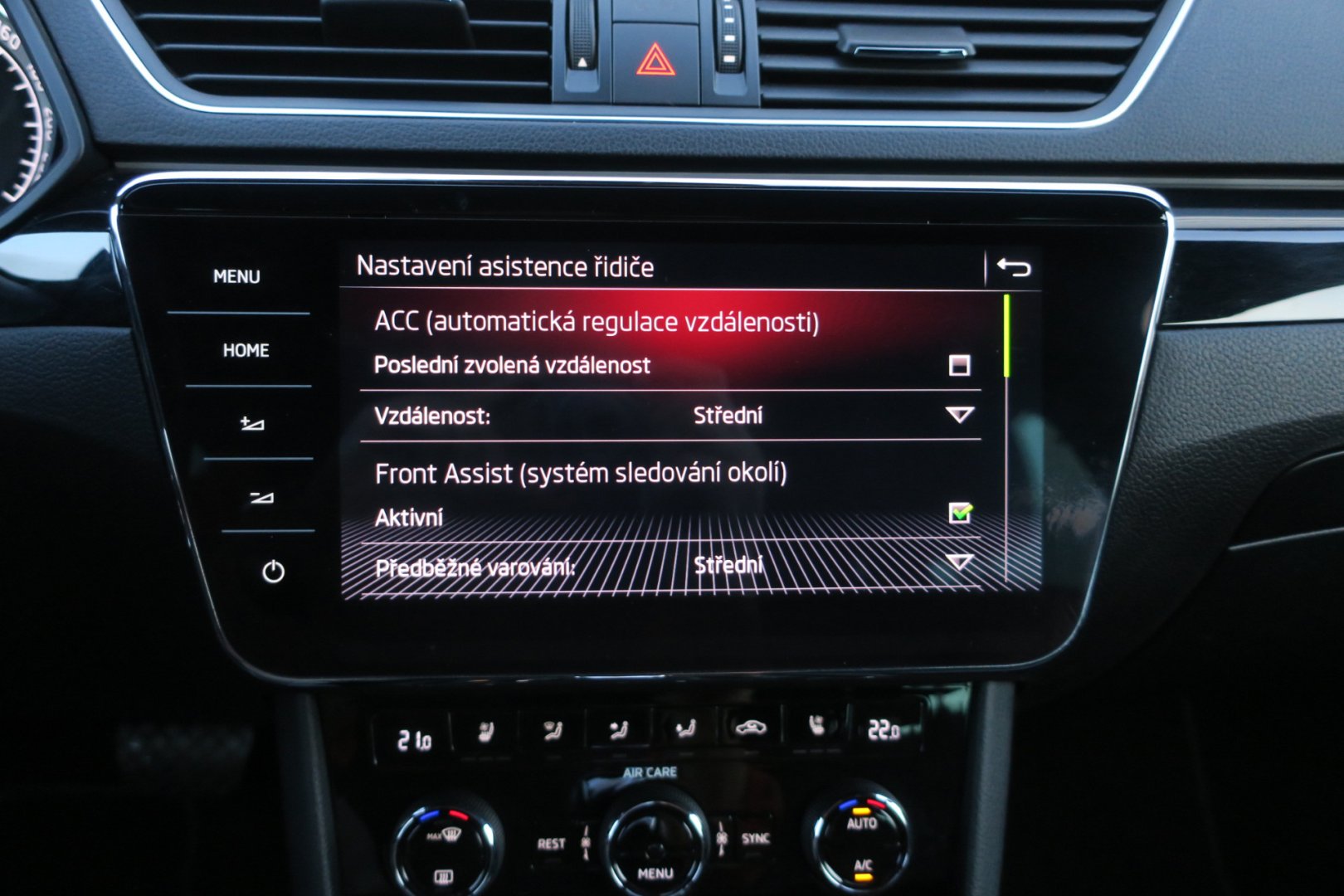 | Asistenční systémy | Adaptivní tempomat, Aktivní asistent řízení, Asistent pro jízdu v koloně, Asistent pro vedení vozu v jízdních pruzích, Asistent při jízdě ze svahu, Asistent rozjezdu do kopce, Asistent změny jízdního pruhu, Parkovací kamera, Parkovací senzory, Parkovací senzory přední, Parkovací senzory zadní, Rozpoznávání dopravních značek |