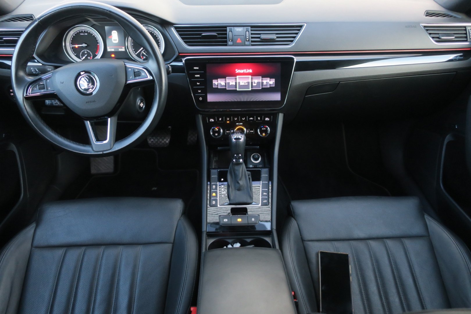 | Vnitřní výbava a komfort | Ambientní LED osvětlení interiéru, Bezklíčkové ovládání, Deaktivace airbagu spolujezdce, El. ovládání oken, El. ovládání zrcátek, El. ovládaný kufr, El. parkovací brzda, El. sklopná zrcátka, El. startér, Elektrochromatické vnitřní zpětné zrcátko, Klimatizace aut. , Klimatizace třízónová, Klimatizovaná přihrádka, Kožené čalounění, Malý kožený paket, Multifunkční volant, Nastavitelný volant, Pádla řazení na volantu, Posilovač řízení, Senzor opotřebení brzd. destiček, Senzor stěračů, Senzor tlaku v pneumatikách, Síťka mezistěny zavazadlového prostoru, Střešní okno, Venkovní teploměr, Vnitřní teploměr, Vyhřívaná zrcátka, Vyhřívané trysky ostřikovačů skla, Vyhřívaný volant, Zadní loketní opěrka |