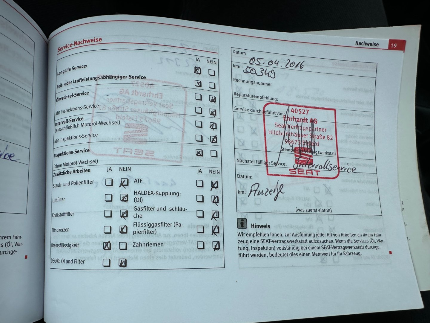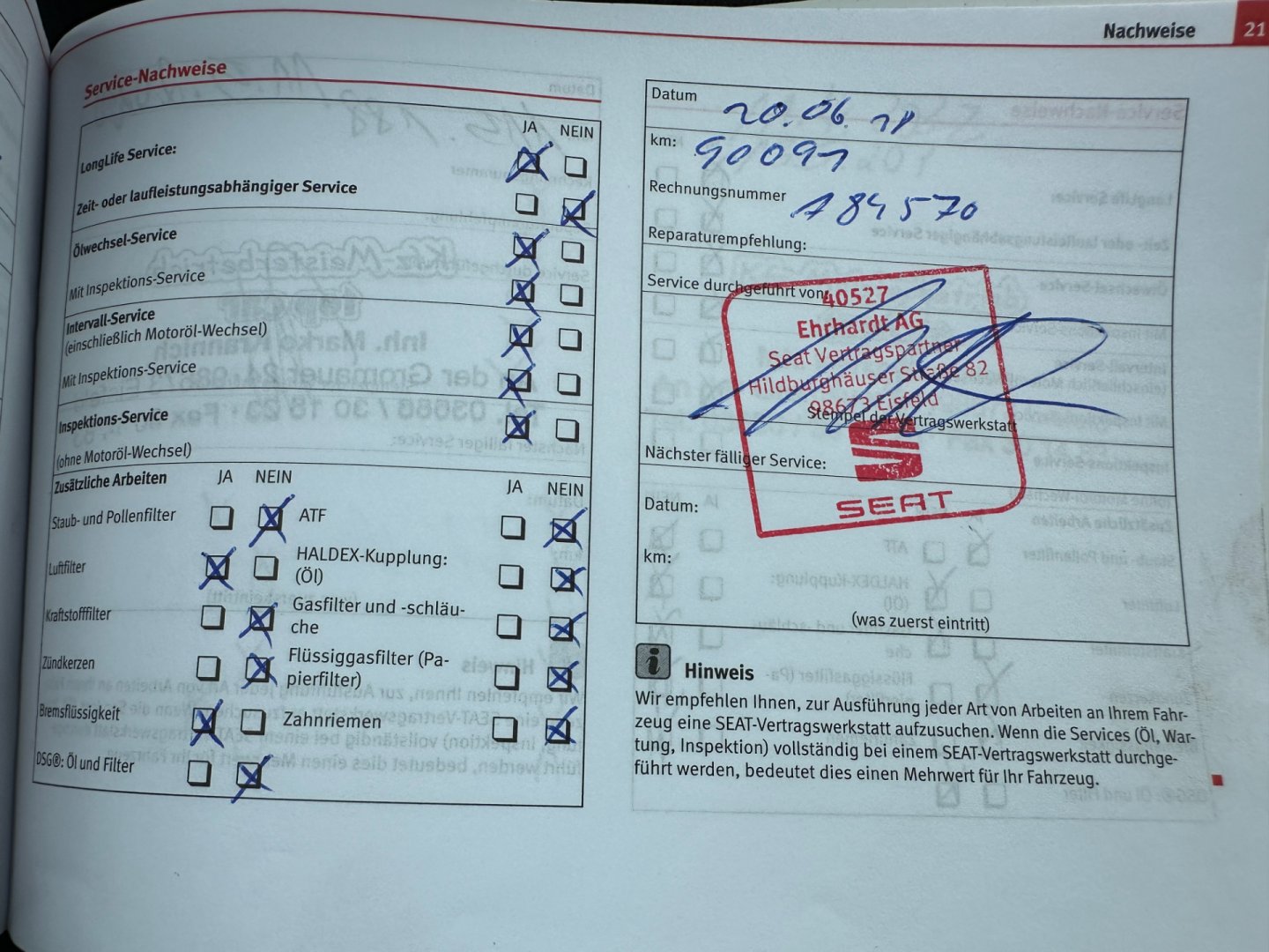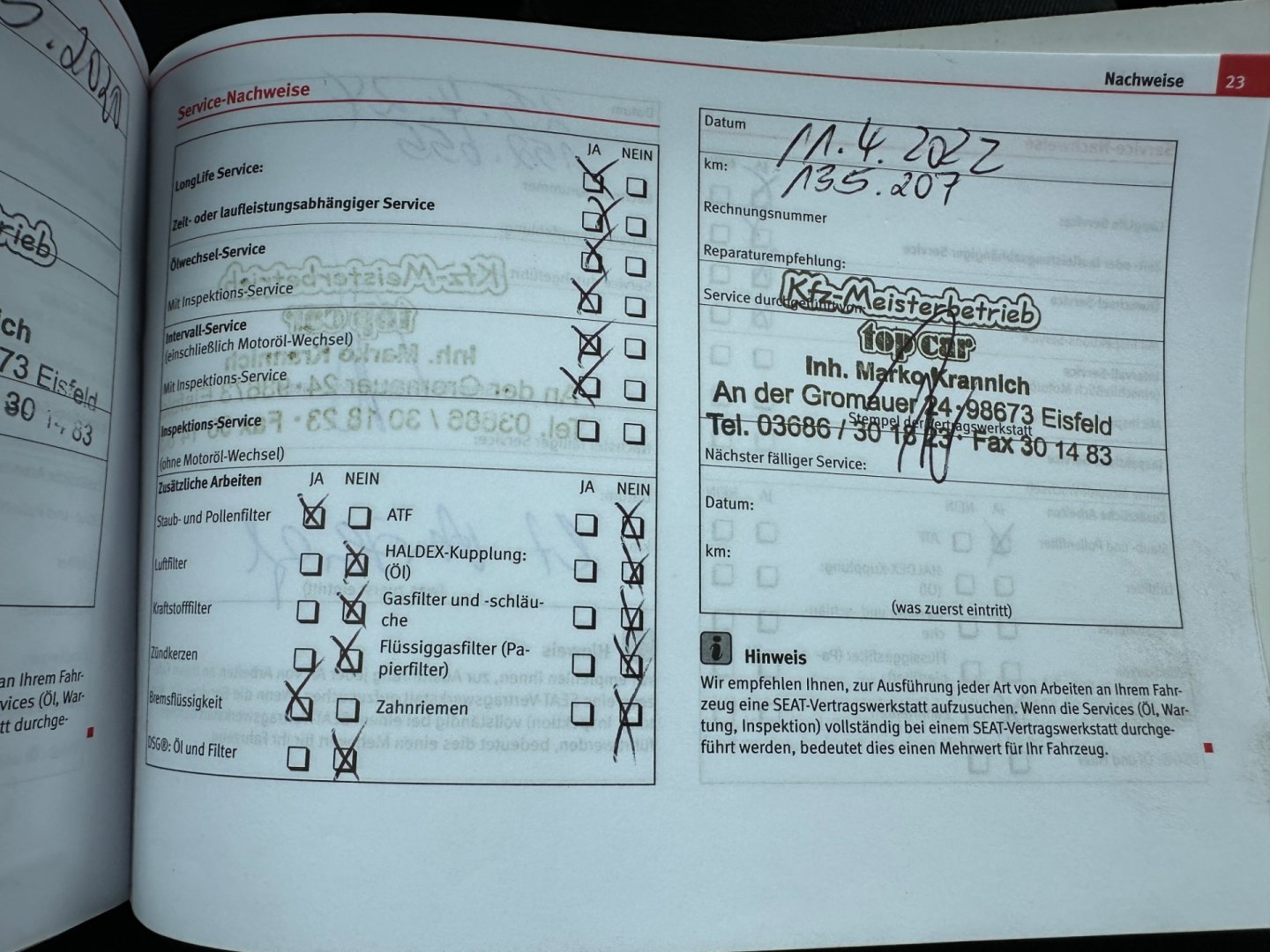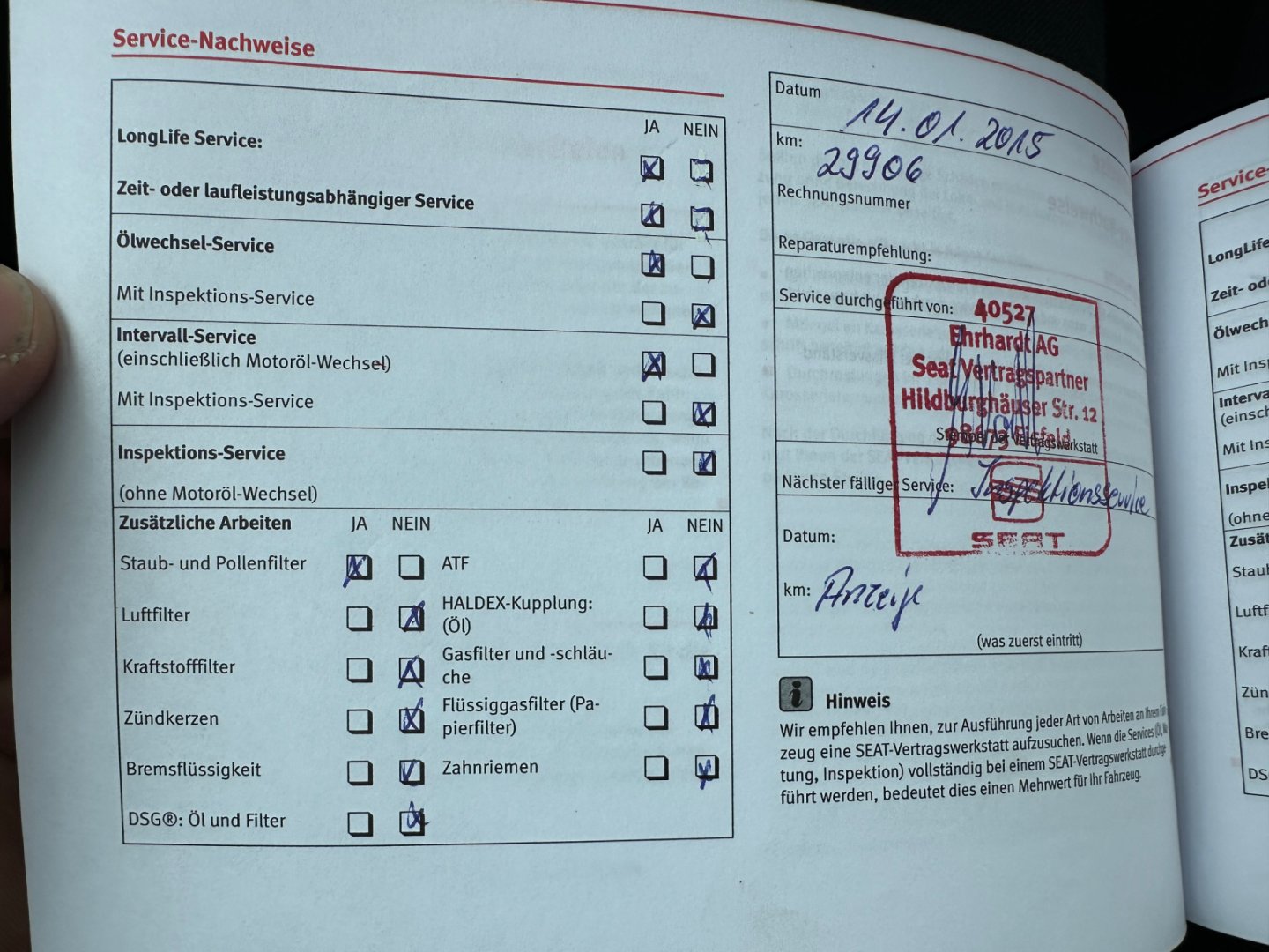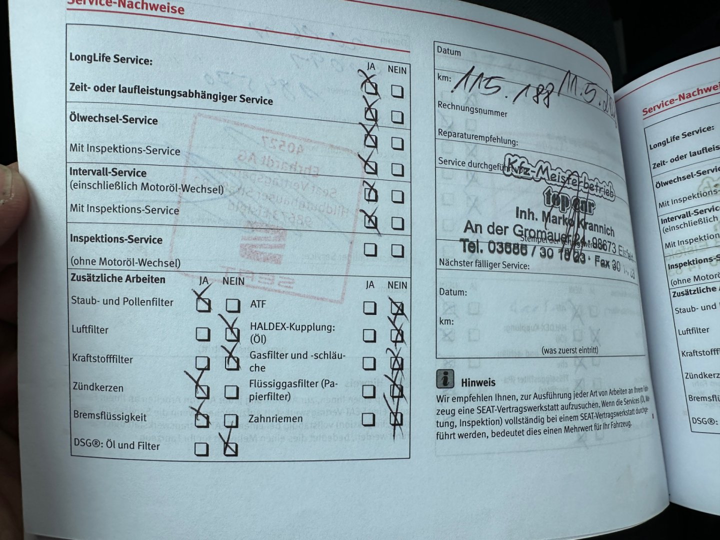• Servisní knížka