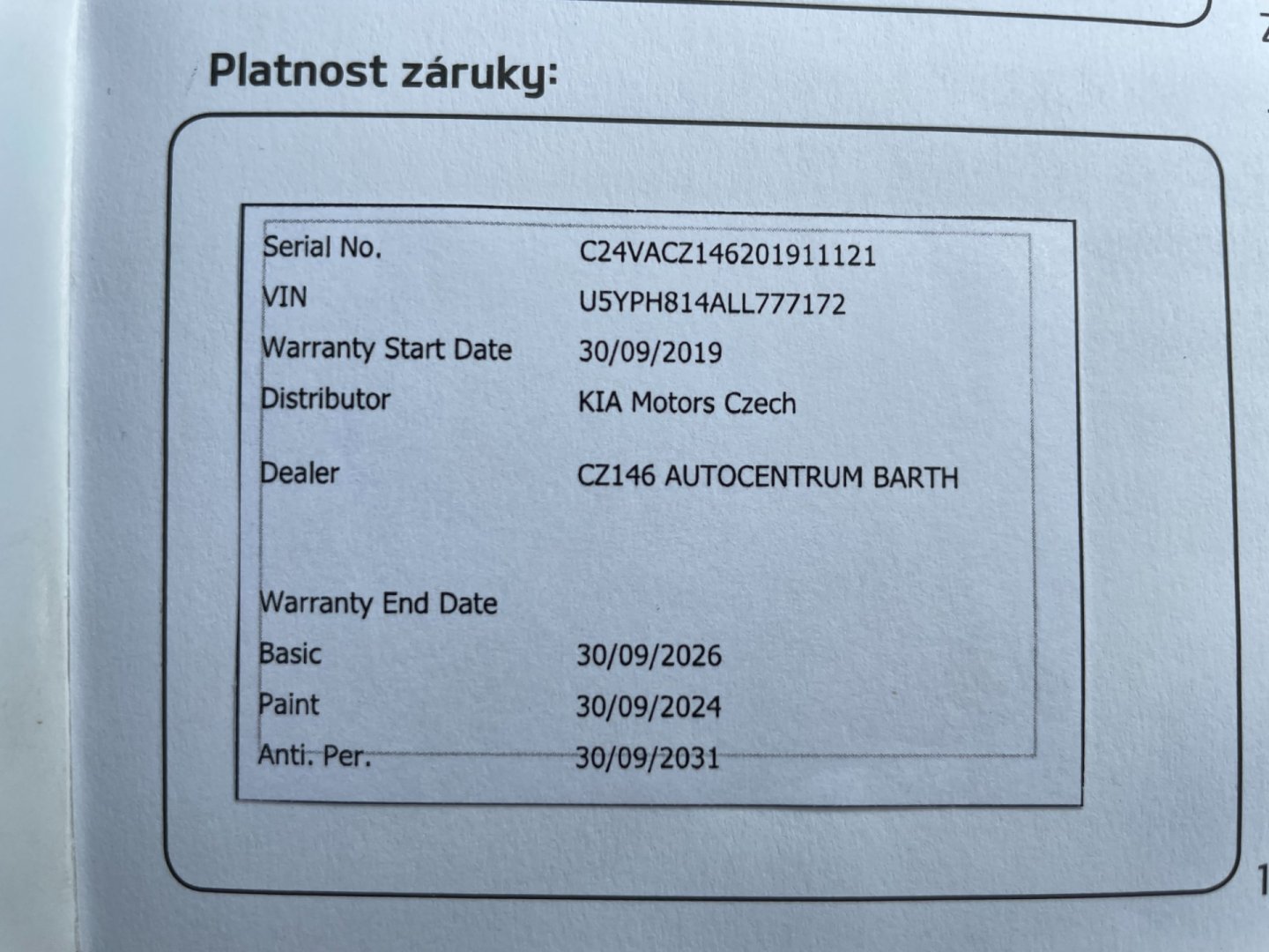 • Servisní knížka