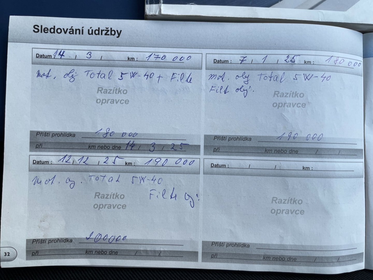 - Servisní knížka