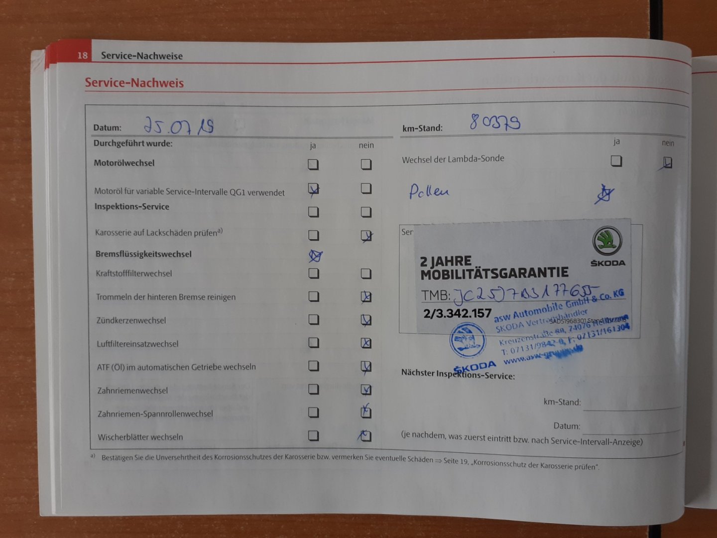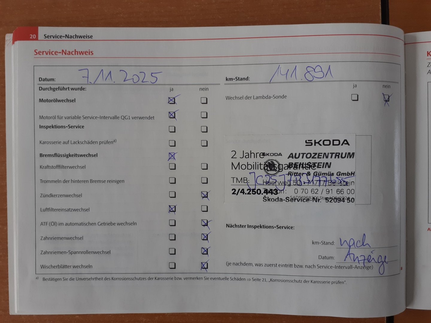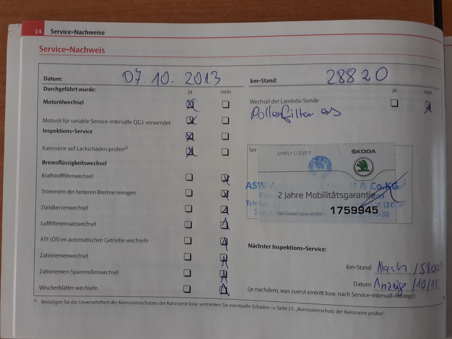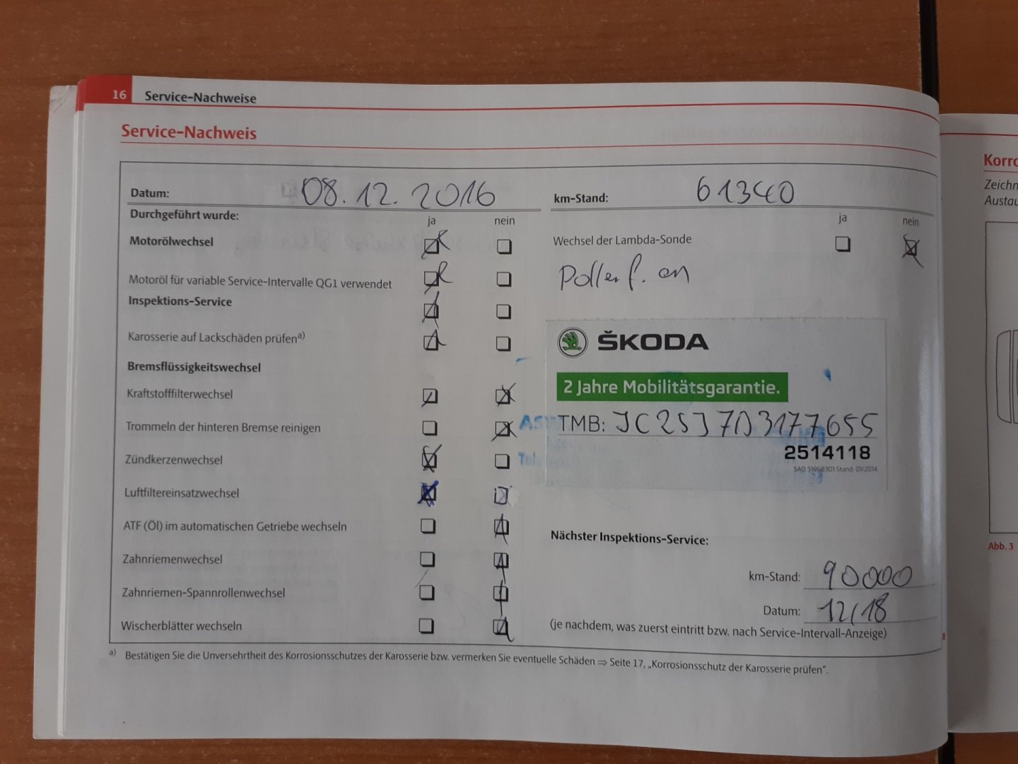 - Servisní knížka