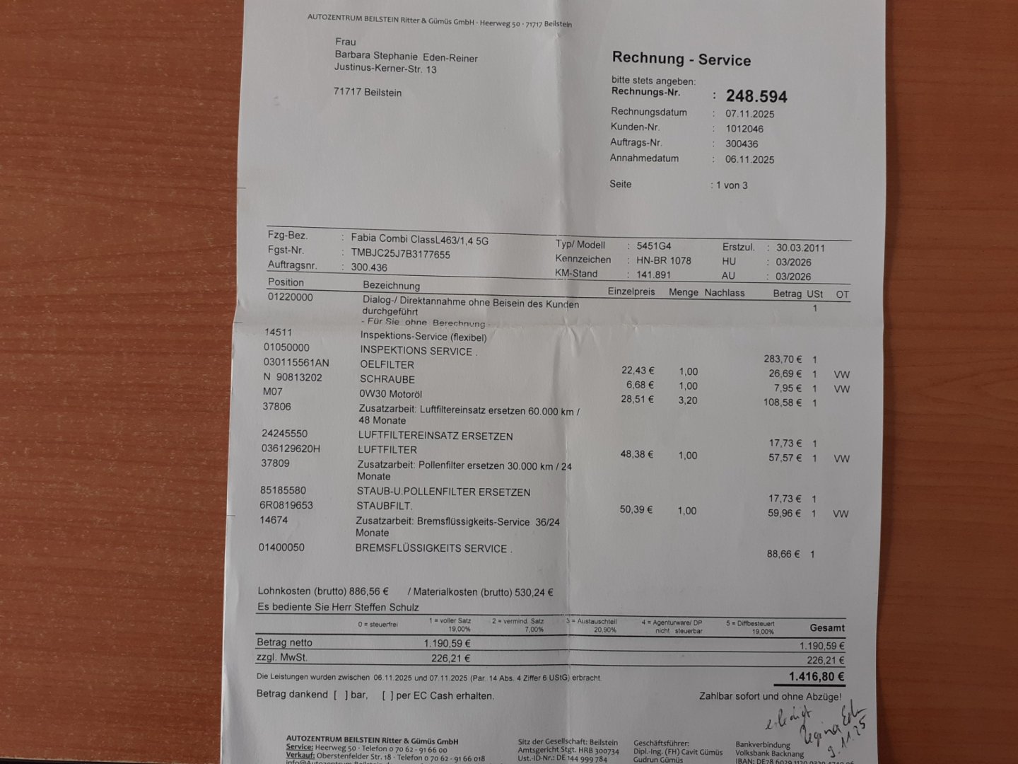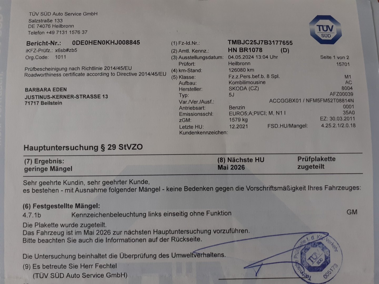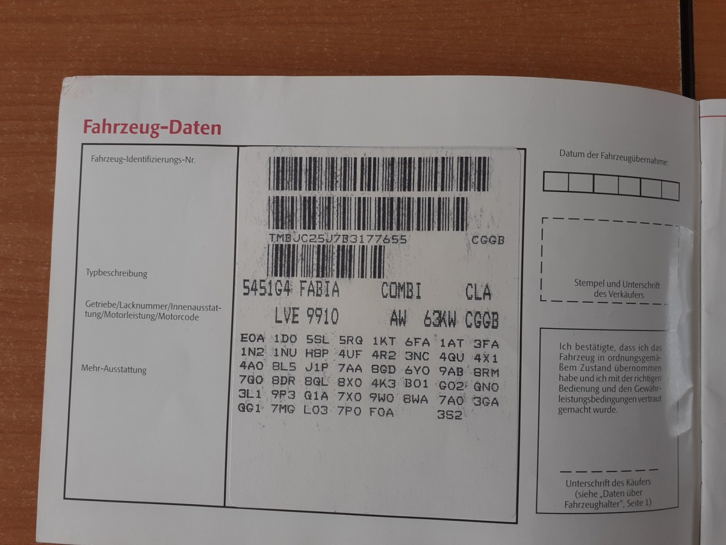 Servisní knížka, 1. Majitel
