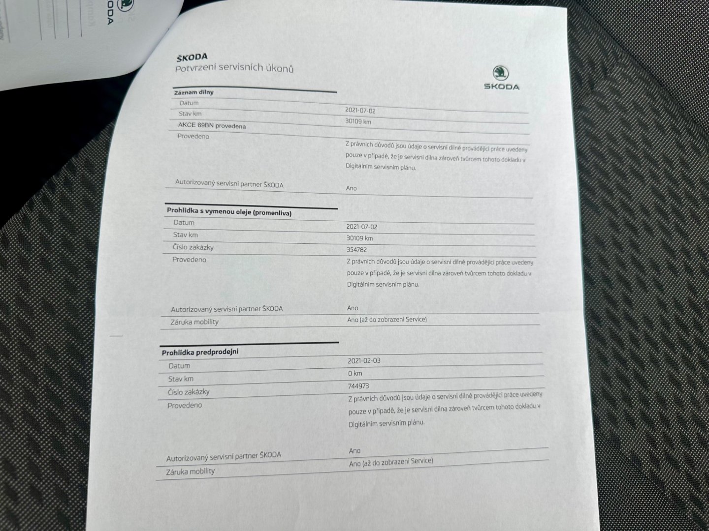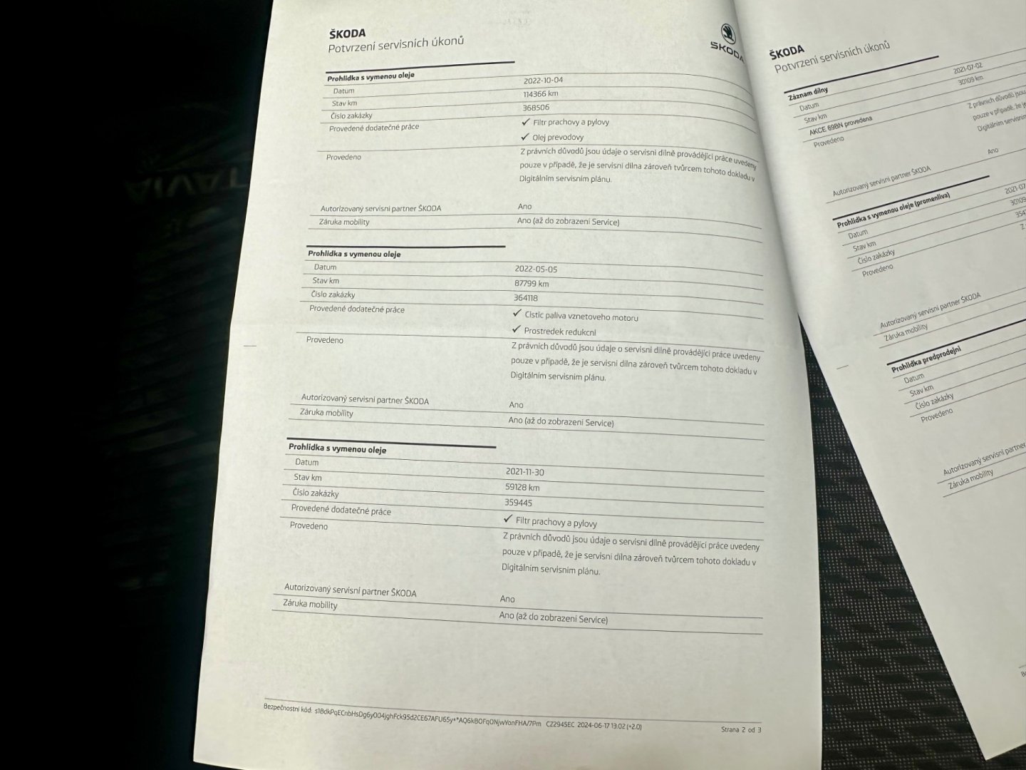 - Servisní knížka