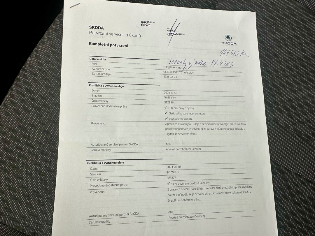 Velmi pěkný stav: - rozvody hotové - nový olej v automatu Bohatá výbava: Motor: 2.0TDI 110KW Převodovka: Automatická 7-mi stupňová + pádla pod volantem Rok výroby: 2021 Najeto: 229 250 km Počet míst: 5 2x Klíče VIN: TMBJJ7NX4MY101632 STK: 01/27 Původ: Česká republika Doložená servisní historie, druhý majitel Výbava: - Tempomat - Vyhřívané čelní sklo - Vyhřívaná přední sedadla - Zadní parkovací čidla - Navigace - Digitální cockpit - Front Assist - Jízdní Mody - Ambientní osvětlení - LED automatické denní svícení - Dešťový senzor - Originální sklopné tažné zařízení - Android Auto/Apple CarPlay - KESSY - Bezklíčové startování a odemykání - Vyhřívaná zpětná zrcátka - Funkce AUTOHOLD - Asistent jízdních pruhů - Asistent rozjezdu do kopce - Kožený multifunkční tříramenný volant - ESP, ASR, ABS - Digitální dvouzonová automatická klimatizace - Palubní PC - Funkce COMING HOME a LEAVING HOME - El. ovládání oken - Střešní hagusy - ISOFIX