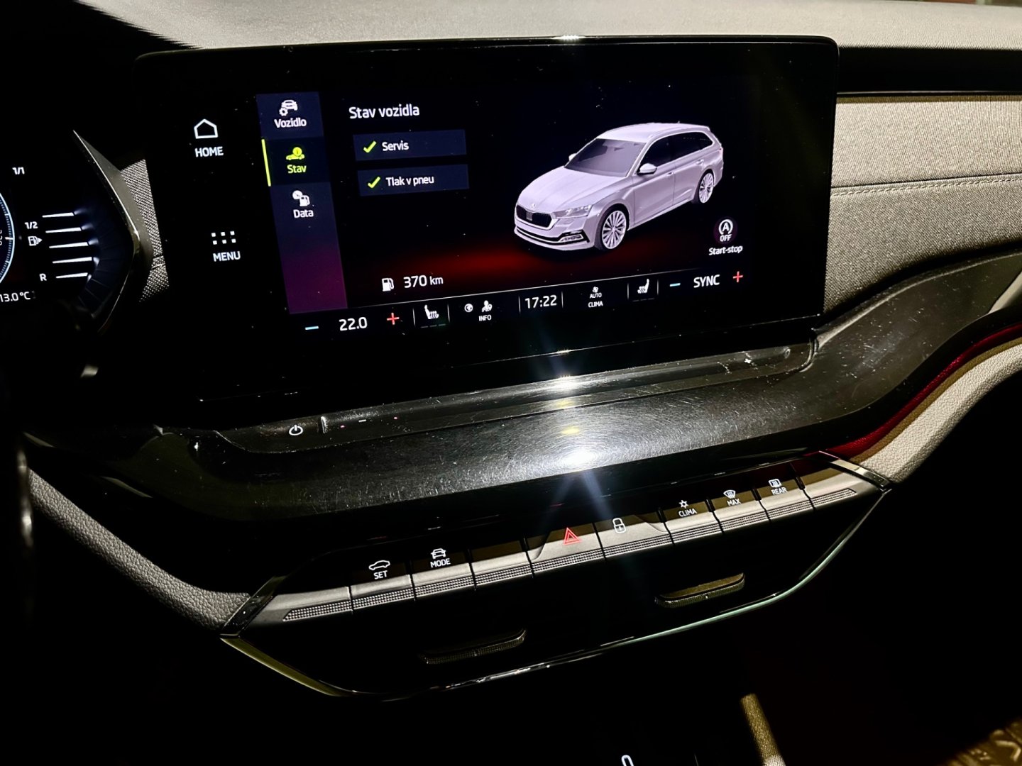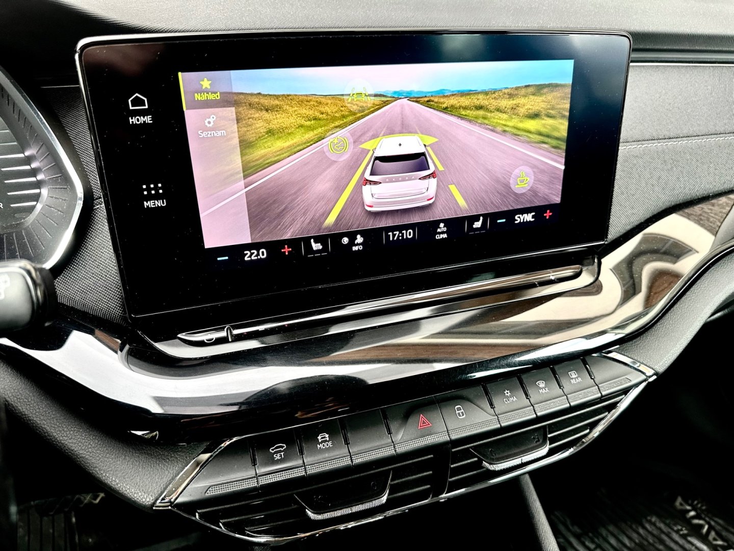 | Vnitřní výbava a komfort | Ambientní LED osvětlení interiéru, Bezklíčkové ovládání, Deaktivace airbagu spolujezdce, El. ovládání oken, El. ovládání zrcátek, El. parkovací brzda, El. sklopná zrcátka, Elektrochromatické vnitřní zpětné zrcátko, Klimatizace aut. , Klimatizace dvouzónová, Klimatizovaná přihrádka, Malý kožený paket, Multifunkční volant, Nastavitelný volant, Pádla řazení na volantu, Posilovač řízení, Senzor opotřebení brzd. destiček, Senzor stěračů, Senzor tlaku v pneumatikách, Venkovní teploměr, Vyhřívaná zrcátka, Vyhřívané čelní sklo, Zadní loketní opěrka |