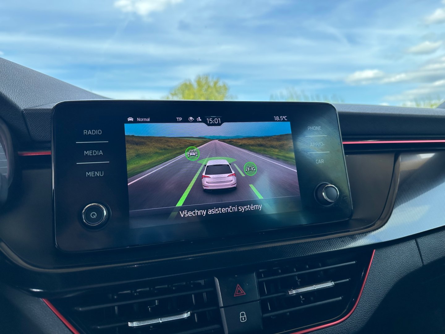 • Asistent pro vedení vozu v jízdních pruzích