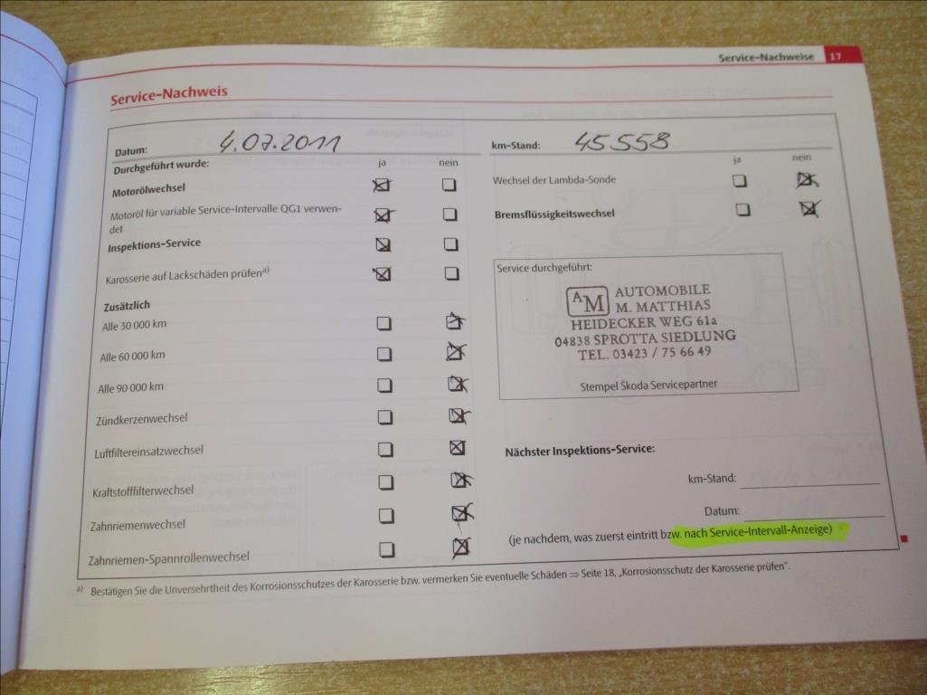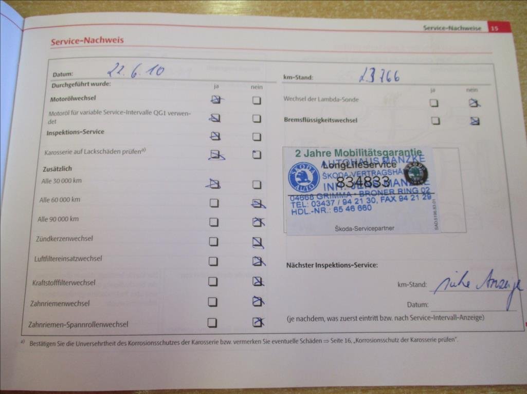 - Servisní knížka